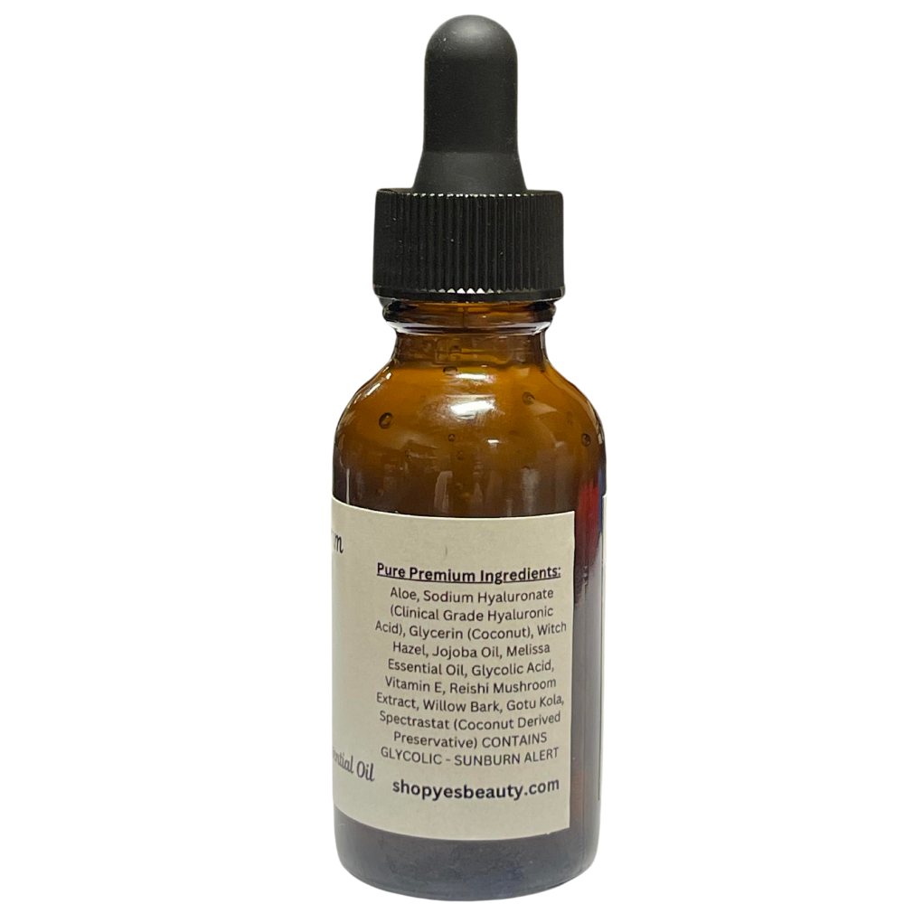 Leave on daily exfoliant & blemish spot treatment. Can be used on face, neck, back, & chest. 10% Glycolic Exfoliation : Glycolic acid is an alpha hydroxy acid (AHA) that helps in exfoliating the skin, removing dead skin cells, and revealing smoother, brighter skin. Anti-Aging : It can reduce the appearance of fine lines, wrinkles, and improve skin texture. Hyperpigmentation : Regular use can help reduce dark spots and even out skin tone. Hyaluronic Acid Hydration : Hyaluronic acid is a humectant that helps attract moisture into the skin, keeping it plump and hydrated. Skin Barrier Support : It strengthens the skin's barrier, preventing water loss and improving elasticity. Melissa Essential Oil Calming and Soothing : Melissa essential oil is known for its anti-inflammatory and calming properties, which can help soothe irritated skin. Antioxidant : It has antioxidant benefits, which help protect the skin from environmental stressors and free radical damage. Aromatic : This oil has a light, lemony scent that can also provide a relaxing effect. Benefits of the combination Exfoliation and Hydration : The glycolic acid exfoliates while the hyaluronic acid replenishes moisture, ensuring the skin doesn’t get overly dry or irritated. Soothing Effect : Melissa essential oil helps calm the skin after exfoliation, making this serum suitable for those with sensitive skin or prone to irritation. Radiance and Clarity : With regular use, this serum can promote clearer, more radiant skin, reducing dullness and uneven texture. We will let our ingredients to do the talking for us. Below we explain the anti-aging benefits of all the ingredients in our 10% Glycolic Serum. We only use proven anti-aging ingredients sourced from suppliers we have vetted and trusted. No fillers, No parabens, No sulfates, No drying alcohols, & No animal cruelty We safety seal all our products prior to shipping YES Beauty is a brand from My Beautiful Daughters Aloe - great for skin regeneration and hydration. Sodium Hyaluronate (Clinical Grade Hyaluronic Serum) Sodium Hyaluronate works deep within the layers of skin to hydrate while hyaluronic acid’s larger molecular size rests on the surface skin and protects from water loss. Both support collagen via increased water retention which enables collagen to stretch without breaking. via increased water retention which enables collagen to stretch without breaking. Glycerin (Coconut) Moisturizes skin, smoothes skin, makes skin appear dewy. Witch Hazel - treat, soothe, and protect skin. Jojoba Oil - Hydrates the skin, balances natural oil production, delivers antioxidant protection, has anti-inflammatory effects. Melissa Officinalis Seed Oil (MELISSA ESSENTIAL OIL) possesses unique properties that benefit the skin for a radiant complexion. For sensitive or irritated skin, Melissa oil's anti-inflammatory properties provide relief. Balances oily skin - It can help regulate oil production . Glycolic Acid Acts as a chemical exfoliant by loosening the bonds between dead skin cells while helping to treat acne. Glycolic acid also stimulates collagen production and acts as a humectant, attracting moisture to the skin. Vitamin E Seals in moisture, smooths skin, antioxidant Reishi Mushroom Extract Restores moisture loss, fights fine lines and wrinkles, reduces stress, improves sleep, boosts immune system Willow Bark Gently exfoliates, calms redness, reduces oiliness and signs of aging. Gotu Kola - Hydrates Skin and helps retain moisture. Rich in antioxidants that fight off free radical damage. Spectrastat (Coconut Derived Preservative) - All-natural versatile broad spectrum preservation system. Serums & Oils - Apply a few drops of serum to the face in the morning and evening. Creams - Apply a small amount in morning and evening Retinol - Follow same routinol but recommended yo use in PM for full effect If irritation occurs, rinse off, cease use, and consult a physician. Use only as directed on unbroken skin. Patch testing prior to use is advised. Keep out of reach of children.