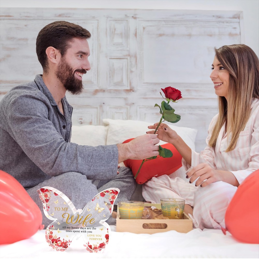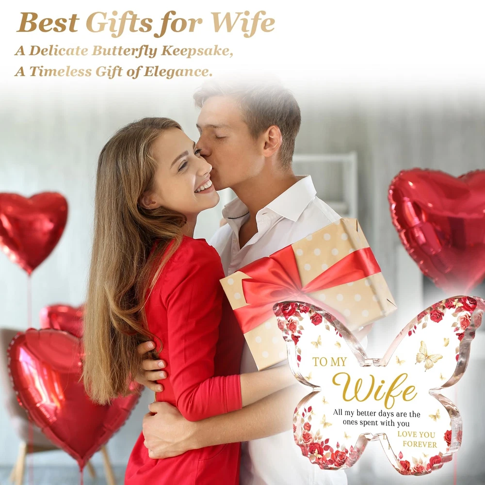 Glydein Romantic Gifts for Wife, Best Wife Christmas Gift Ideas - 5x3.8x0.5 Inch Butterfly Acrylic Plaque Decor - Christmas Mothers Day Valentines Day Anniversary Wedding Birthday Gift for Wife 【Romantic Gifts for Wife】“To my wife, all my better days are the ones spent with you. Love you forever.” The wife gift full of love imprints can witness your love story. When she see the beautiful plaque, she will smile unconsciously. Best wife christmas gift ideas. 【Suitable for All Occasions】With its delicate butterfly outline symbolizing grace and enduring love, this butterfly gift becomes an exquisite wife gift for any occasion, such as Birthday, Anniversary, Mothers Day, Valentines Day, Thanksgiving Day and Christmas gift for wife. 【Paperweight & Desk Decor】Our wife gift can be used not only as decorations, but also as a paperweight when reading. This graceful gift can fit with any decorations style, which makes it perfect for placing in office, studio, bedroom, living room, study room, etc. 【High-quality Material】The wife butterfly gift is made of high-quality acrylic, which is crystal clear under the light. The text and pattern are printed with UV technology, just like a living butterfly flying among the flowers. 【Satisfaction Guarantee】We will do our best to provide you great shopping experience and high-quality products! If there is any problem with our butterfly gift, we will figure it out for you as soon as possible. Shipping We offer FREE shipping on all orders! We ship within Three business days of payment, usually sooner. We use a selection of shipping services such as UPS, FedEx, USPS etc. We only ship to the lower 48 states, no APO/FPO addresses or PO Boxes allowed. Local pickups and combined shipping options are not provided at this time. Return You can return a product for up to 30 days from the date you purchased it. Any product you return must be in the same condition you received it and in the original packaging. Please keep the receipt. Payment We accept payment by any of the following methods: PayPal Please pay as soon as possible after winning an auction, as that will allow us to post your item to you sooner! Feedback Customer satisfaction is very important to us. If you have any problem with your order, please contact us and we will do our best to make you satisfied. Contact Us If you have any queries, please contact us via ebay. We usually respond within 24 hours on weekdays. Please visit our eBay store to check out other items for sale! Thank you for shopping at our store.