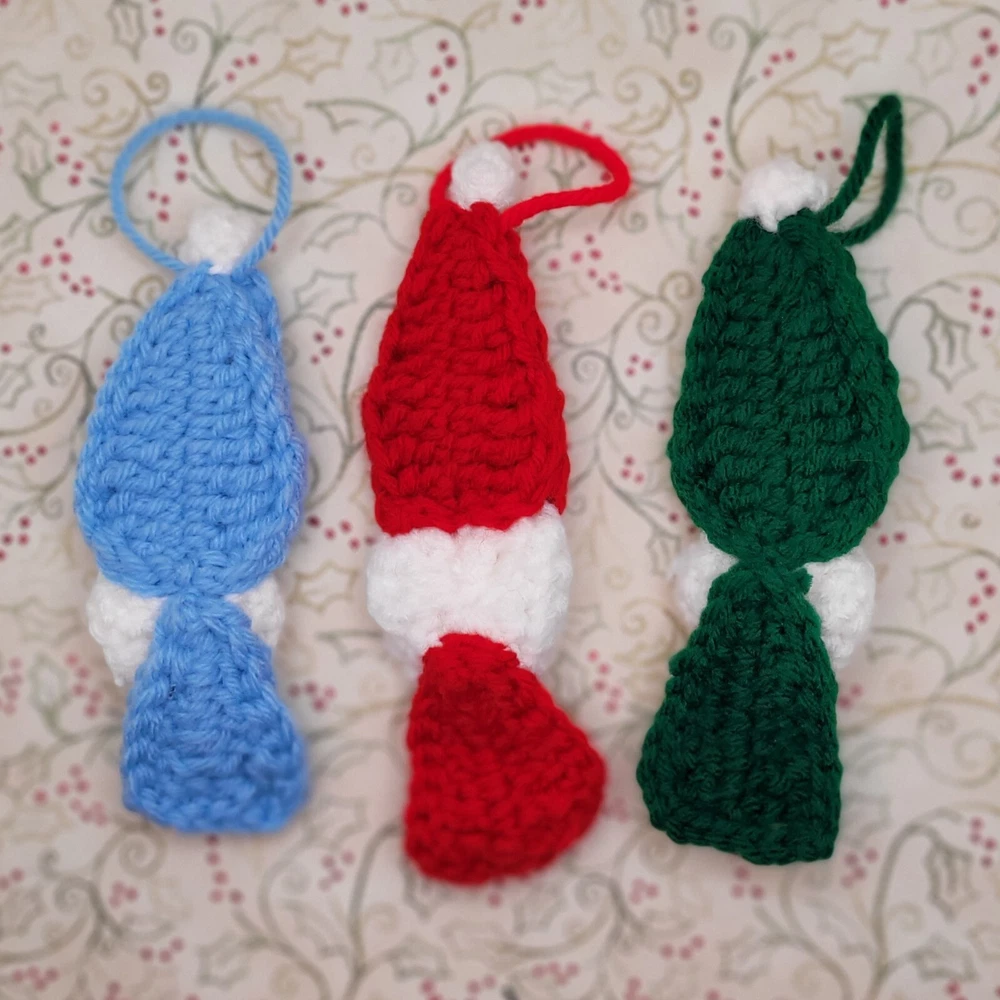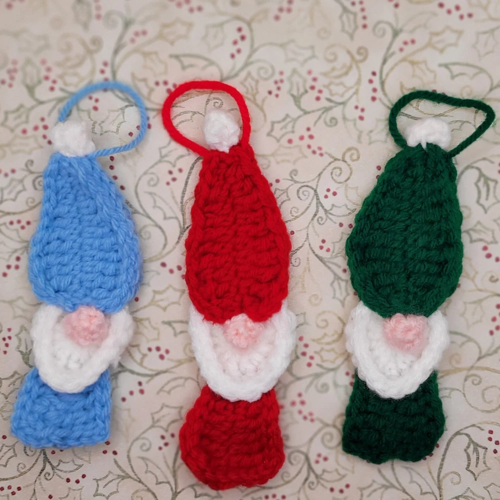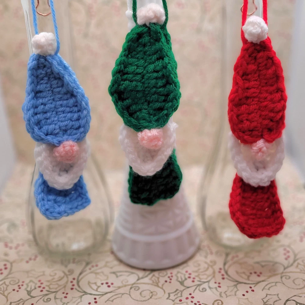 Gnome Christmas Ornaments Set of 3 - Red, Green, Blue - Handmade Crochet