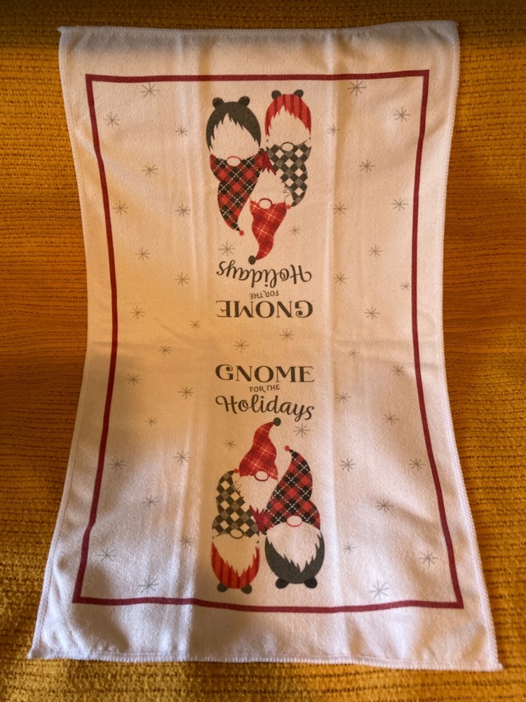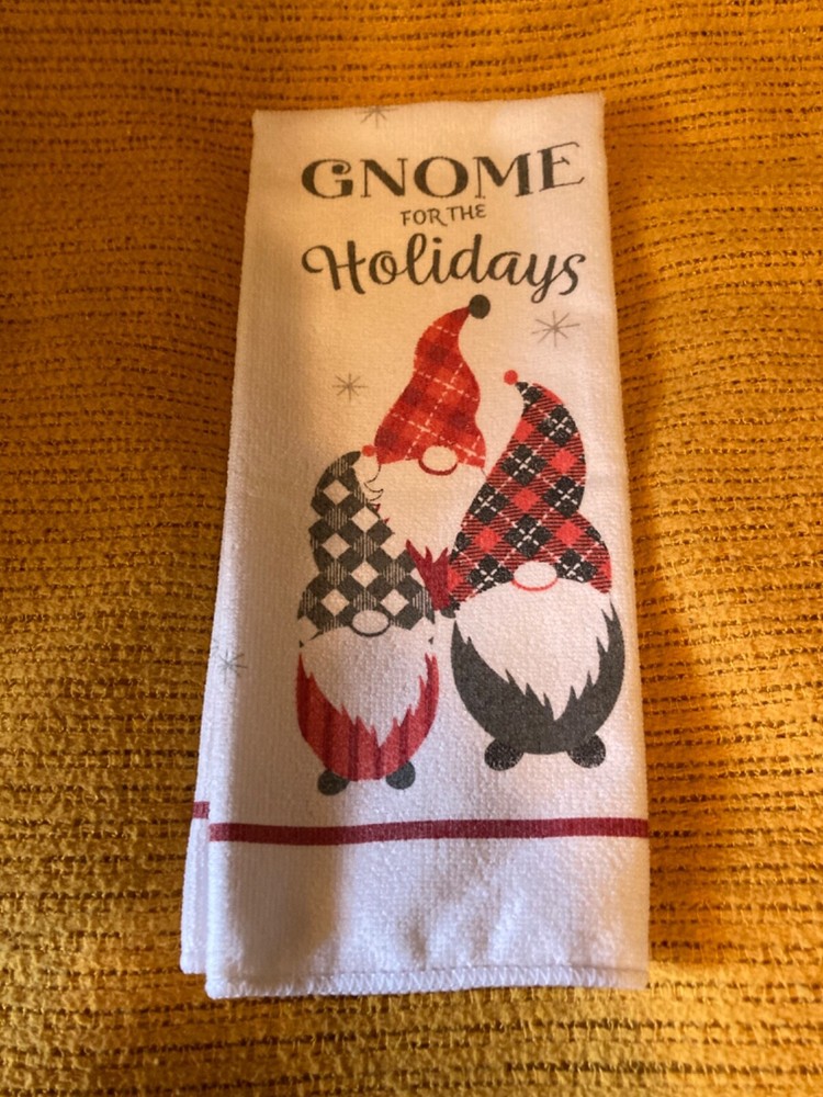“Gnome For The Holidays Tea Towel, Holiday, Christmas, 25 x 14.5 in, Made In China.” Not bought Brand New. Slight wear, but, overall, Very Good - Like New condition. Measures about 635 x 368.3 mm (25 x 14.5 in). See pictures for details. Any questions about this item, please ask. Posted with Buyer’s Choice for United States. eBay International Shipping for International. Combined Shipping available. Tracking number included.