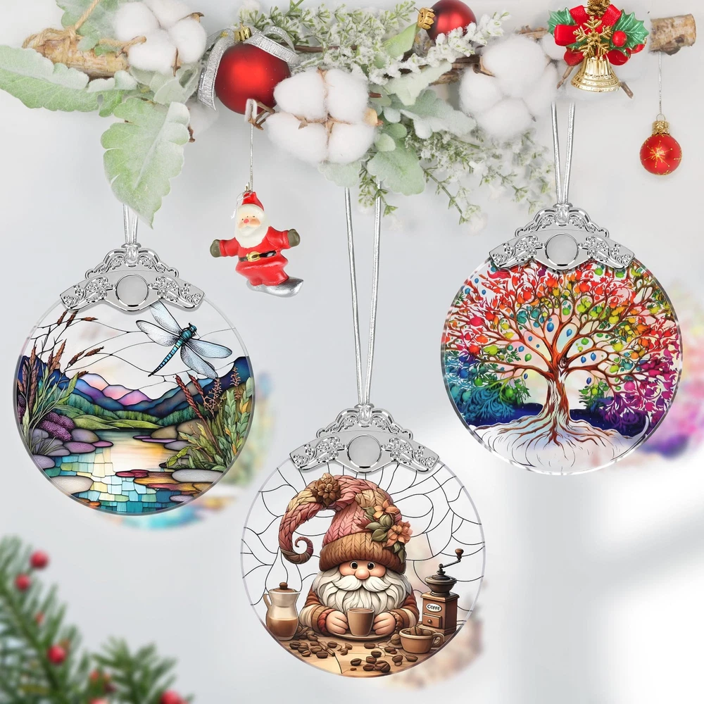 🌟Exquisite and Elegant: The intricate design and vibrant colors of this ornament make it a standout piece in any holiday decor. It's not just a decoration; it's a piece of art that embodies the essence of the festive season. The exquisite craftsmanship ensures that it can withstand the test of time, making it a unique Christmas keepsake that your family will cherish for years to come. 🌟High-Quality Materials: Welcome the holiday spirit with our exquisite Christmas tree ornament. Crafted in a charming stained glass style, this ornaments for Christmas tree is more than just an ornament; it's a heirloom keepsake and a perfect holiday gift idea. Size 3*3.5 inch, this ornament includes a string for easy hanging on your Christmas tree. 🌟Versatile Decor: This Christmas home decor is unique, in addition to adorning your Christmas tree and a great addition to any home! Perfect for any room in your home, from living rooms and bedrooms to kitchens and bathrooms that will complement any decor style and to create a festive atmosphere throughout your home. 🌟Perfect Gift: Whether you're looking for a special Christmas decoration or searching for a meaningful gift exchange, our Christmas hanging ornament is the perfect choice. Its elegant stained glass decor adds a touch of sophistication to your Christmas, making it a focal point of your holiday festivities. It is a thoughtful and memorable gift for friends and family. 🌟Unique Design: Christmas bauble is more than just a holiday ornament; it's a symbol of love, joy, and togetherness. Make your holiday season memorable with our stained glass ornament. Create lasting memories and add a touch of elegance to your holiday decoration with our Christmas ornament. Order now and experience the of the season!