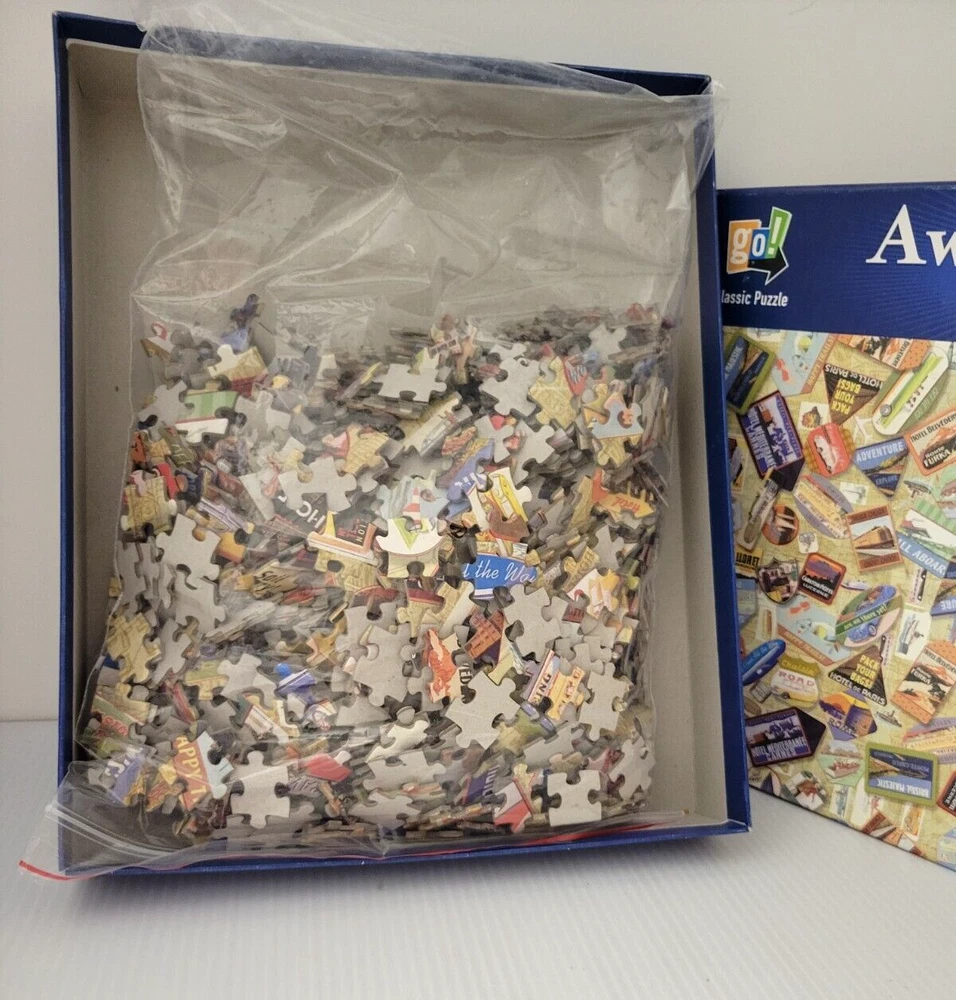 Go! Classic ~ 1000 Piece Jigsaw Puzzle ~ AWAY WE GO Travel Vacation We did not work the puzzle or count the pieces, so we cannot guarantee that all pieces are present. Each item is carefully packaged to prevent any damage and is shipped immediately with tracking.