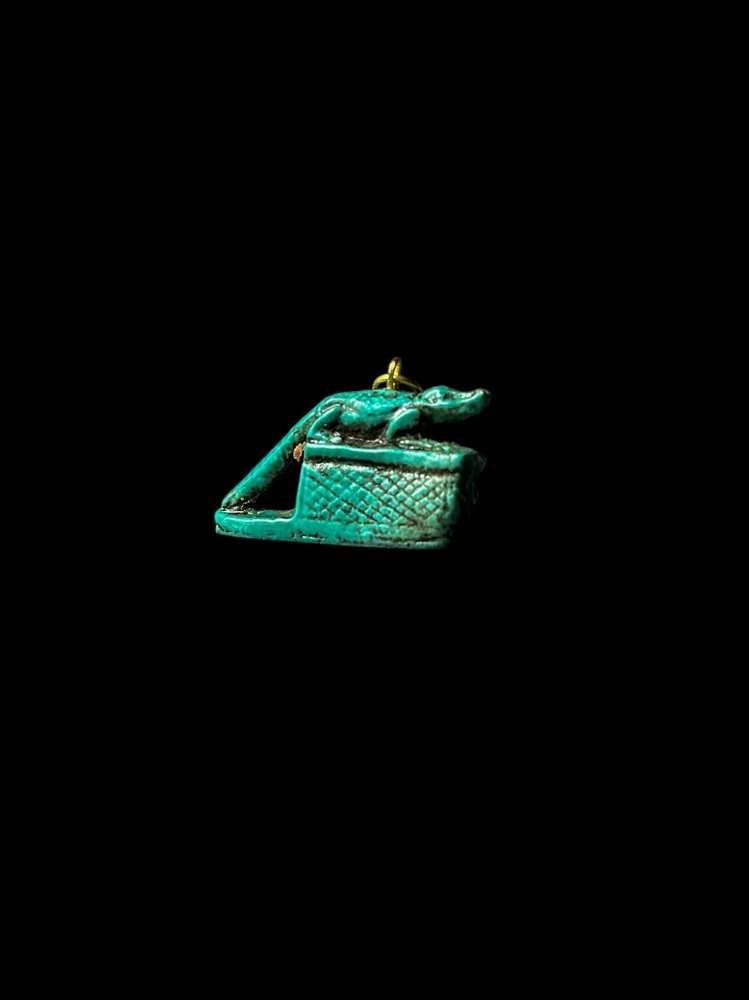 Discover the mystical allure of the God Sobek Powerful Amulet Pendant, a piece crafted with care in Egypt, where its rich heritage infuses each detail. This pendant is a round gemstone amulet, featuring a design that's both mesmerizing and timeless. The stone's natural beauty serves as the centerpiece, complemented by the warm glow of the brass base metal. Adorn yourself with a piece that encapsulates a blend of themes from beauty to magic, making it an ideal accessory for those special moments or as a statement of personal style. The pendant is nickel-free and includes a spring-ring closure for secure fastening. Whether for a birthday, anniversary, or just to treat yourself, this amulet is a unique addition to any jewelry collection.