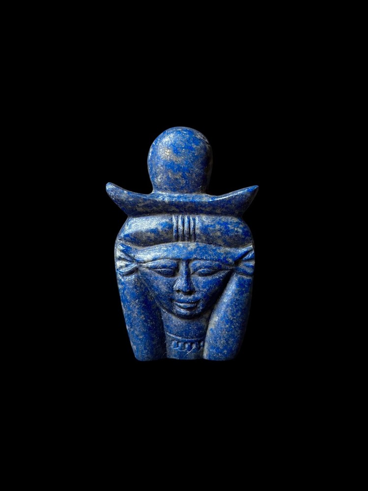 Goddess Hathor Pendant from Pure Lapis Lazuli Stone , Rare Antique Jewlery