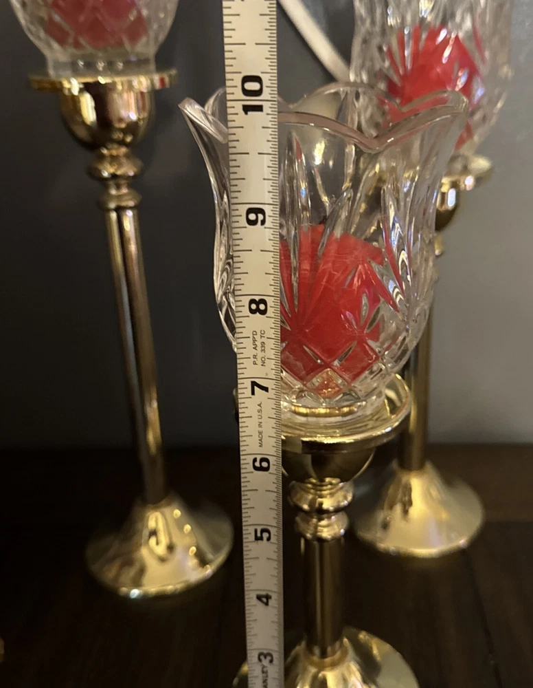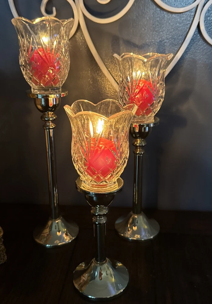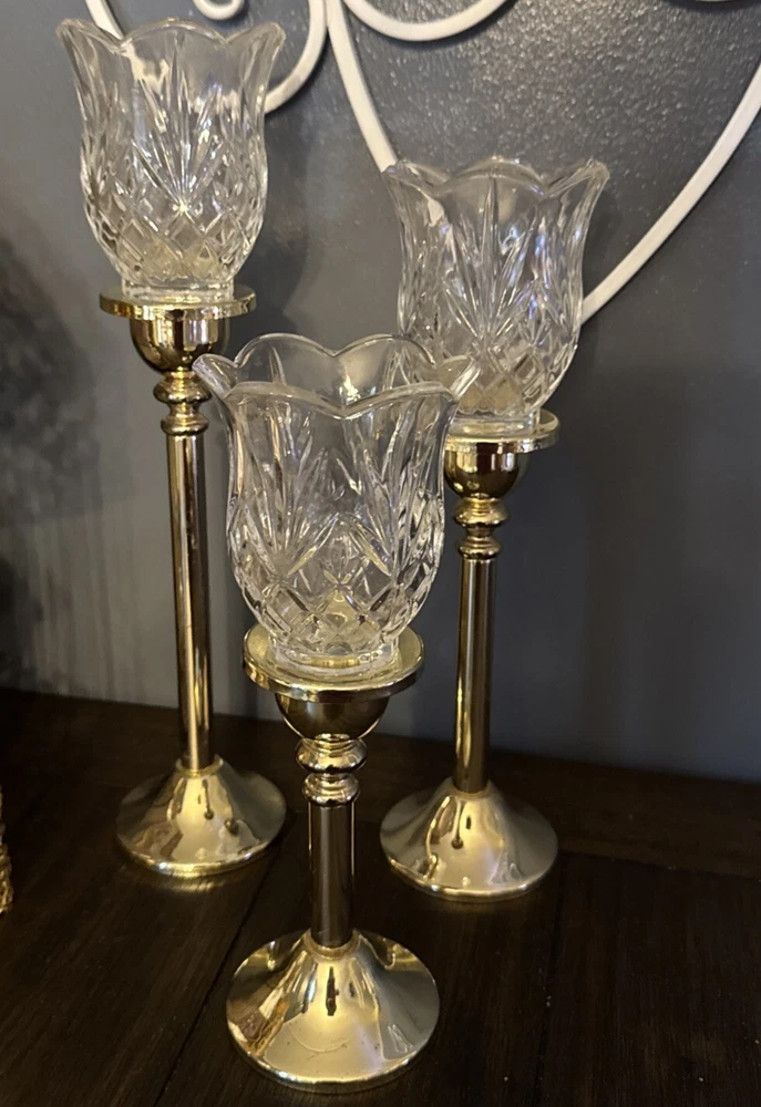Elevate your home decor with this set of three Godinger Vintage Brass and Crystal Votive Candle Holders. The round shape and size of the candle holders make them suitable for mini candles and even furniture. The glossy finish and clear and gold color of the holders are perfect for any room in your home. Crafted from high-quality materials such as glass, metal, and crystal, these candle holders are durable and easy to maintain. You can clean them with a damp cloth or warm water to keep them looking their best. The candle holders feature beautiful candlesticks with floral globes that add a touch of elegance to your living space.