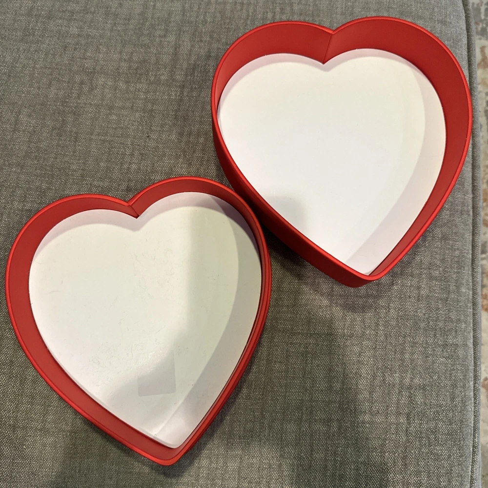 Padded red heart empty Godiva box with a bow and love emblem, the box has two indents pointed out in pics.