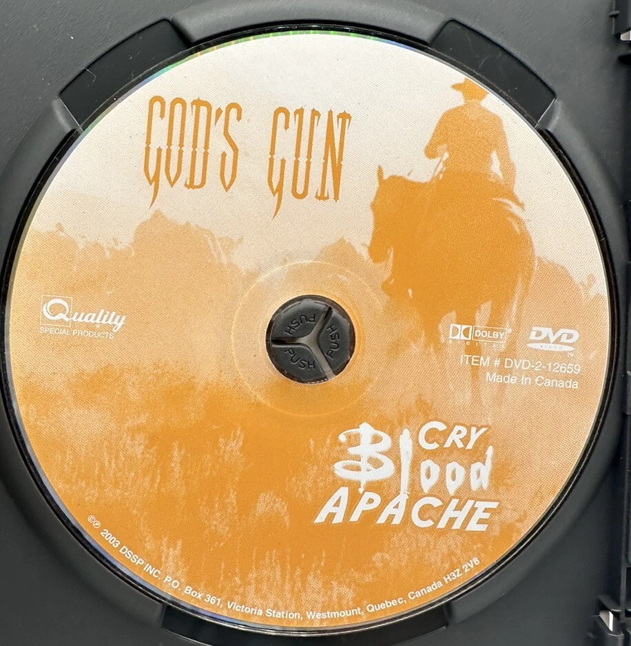 Experience the thrilling action and adventure of "God's Gun and Cry Blood Apache" with this DVD double feature. Featuring Lee Van Cleef and Jack Palance, this DVD set includes two classic movies in the DVD format. The movies are presented in English language with a rating of NR and a sub-genre of Country, Family, and Spaghetti Western. The DVD set comes in a Tall/DVD case and is a Standard Edition. The studio behind the movies is Quality and they were released in 2008. The movies were directed by an unknown director and belong to the Cinematic Movement of Expressionism. This item is perfect for any movie lover and is a must-have for fans of Lee Van Cleef and Jack Palance.