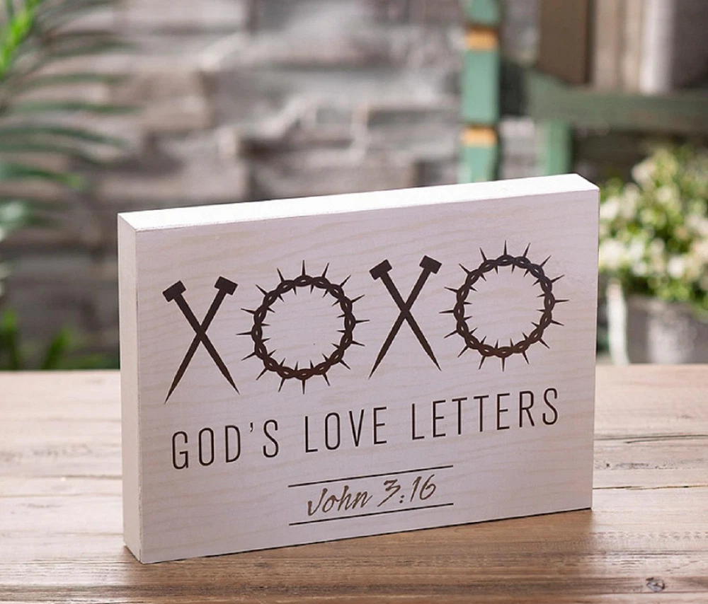 God's Love Letters Nails & Throny Corwns XOXO Valentine's Wooden Sign 11"L #416 God's Love Letters Nails & Throny Corwns XOXO Valentine's Wooden Sign 11"L #416 Click images to enlarge Description God's Love Letters Nails & Throny Corwns XOXO Valentine's Wooden Sign 11"L. This sign depicts the traditional hugs and kisses symbols of "XOXO" with a unique twist. The X's are images of the nails used to nail Jesus to the cross and the O's are images of the spiked crown. This sign reads, "God's Love Letters John 3:16". This sign shows God's love and the sacrifices He and Jesus made for us all. This sign makes a great gift for Valentine's Day or to display all year long as a constant reminder. Details: Measures 11-1/4"Long x 8"High Made of Wood Block Sign Is Free-Standing Re-Usable Year After Year - Or Keep Up All Year Long ~Buy more than one item at the same time from our eBay store and save in shipping costs!~ (If buying different items, just put them all in your cart before paying, to get the combined shipping discount!) Shipping We use UPS SurePost, UPS, USPS and FedEx SmartPost to deliver our products to your home, depending on which method is more efficient for your order. We use suppliers for some of our orders and our suppliers will choose the service that is used for these orders. PLEASE MAKE SURE YOUR ADDRESS CAN BE VERIFIED BY USPS. Please allow 7-10 days for the item to reach your home. We cannot be responsible for items shipped to incorrect or incomplete addresses, which may result in the cancellation of your order. YES, we do combine shipping! The highest shipping cost item ships at regular price, and each additional item ships at $2.00 more in additional shipping charges. If you are buying several different items from our store, put them all into your cart before paying to get the combined shipping discount. Terms of Sale Unless otherwise noted, we accept returns up to 30 Days after your purchase, through the eBay Returns System. Please use eBay to contact us if there is any problems or issues with your order. In some cases, we order the item purchased from one of our suppliers, and it is shipped directly from our supplier to the customer. There are times when an item unexpectedly becomes unavailable from our supplier. We do our best to check on all of the items availability several timea a day. If an item is unexpectedly unavailable, we will issue a refund immediately. Contact Us Please use the message center in eBay to contact us. We check our message box in eBay several times a day. If you have any questions or concerns with your order, please feel free to contact us. We care very much about our customers being 100% happy with their purchases. We would very much appreciate you letting us resolve any issues you may have with your order by contacting us first, before taking any other unnecessary actions. Get images that make Supersized seem small. Showcase your items with Auctiva's Listing Templates! THE simple solution for eBay sellers.