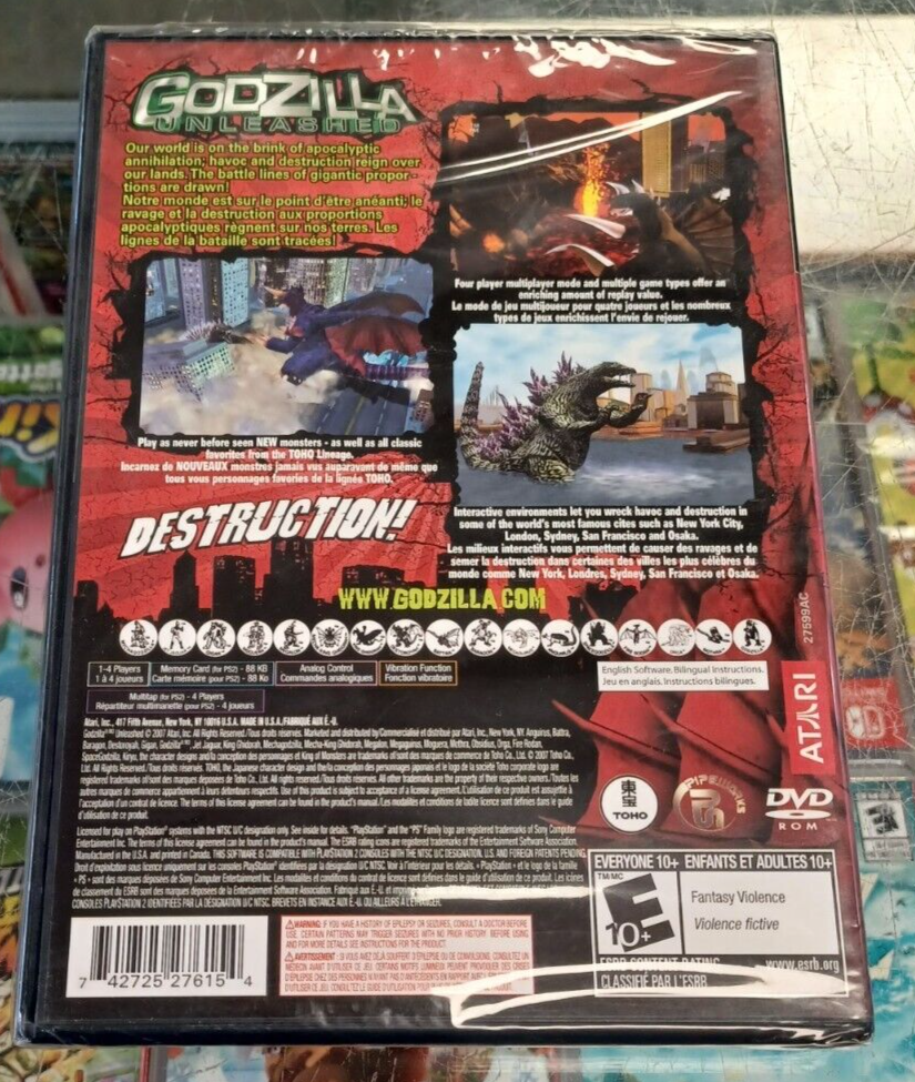 Enter the monster we love to hate: Godzilla. He’s unleashed, and he’s not alone. In Godzilla: Unleashed for PS2 (Sony PlayStation 2, 2007) the player can rampage across the earth as one of multiple infamous unleashed monsters, including King Ghidora, Mothra, Fire Rodan, Megalon, Obsidius, Jet Jaguar, Baragon, Mechagodzilla, Battra, and, of course, Godzilla 2000. The Godzilla Unleashed video game version for PS2, which was developed by Pipewords Software and published by Ataria, allows from one to four players in a three-dimensional (3D) mode. Monsters are free to destroy the earth and such iconic cities as San Fransisco, Sydney, Osaka, and New York, among others. Godzilla: Unleashed features realistic urban backdrops and cinematic action, and it may also allow a cheat to unlock a monster or a special situation. The PlayStation 2 (PS2) version of the game allows the player to take part in reinvented fighting techniques, and the player also has the choice of playing as Battra, MechaGodzilla, King Ghidora, or one of the other tail-swinging, foot-stomping monsters. Throughout the game play, players can discover various cheats and use helpful codes to unlock both special characters or monsters. Monsters in the Playstation version of the Godzilla: Unleashed game have a variety of impressive combat routines in their arsenals. Characters can perform breath attacks, tail whips, somersaults, bicycle kicks, and many more combat moves. Monsters use these combat routines as their weapon of choice during the game. Interestingly enough, some of the monsters in the PlayStation version of the Godzilla: Unleashed game are defenders of the earth and are actually trying to save it. Things do not go so well for our home planet of Earth, however, as Godzilla and his monster friends wreak havoc at every turn. The story line in the PS2 version of Godzilla: Unleashed allows the player to select from a variety of potential ways to save the earth. Video games often contain codes and cheats, and these are certainly helpful as they can show the player how to unlock a special weapon or monster. Codes and cheats for the Godzilla: Unleashed game can be obtained from other players, or they may be found online as well. Monster games such as the PlayStation 2 version of Godzilla: Unleashed test the players’ skills as they check for hidden cheats within the game that will unlock a given monster or bypass a potentially dangerous situation. Monster fights monster in the Godzilla: Unleashed video game for PlayStation 2. It seems that in order to save the earth, it must be destroyed first. With its choice of multiple monsters, various combat routines, urban backdrops, and story line choice, the Godzilla: Unleashed video game will provide endless hours of bone-crushing entertainment and fun on the PlayStation 2.