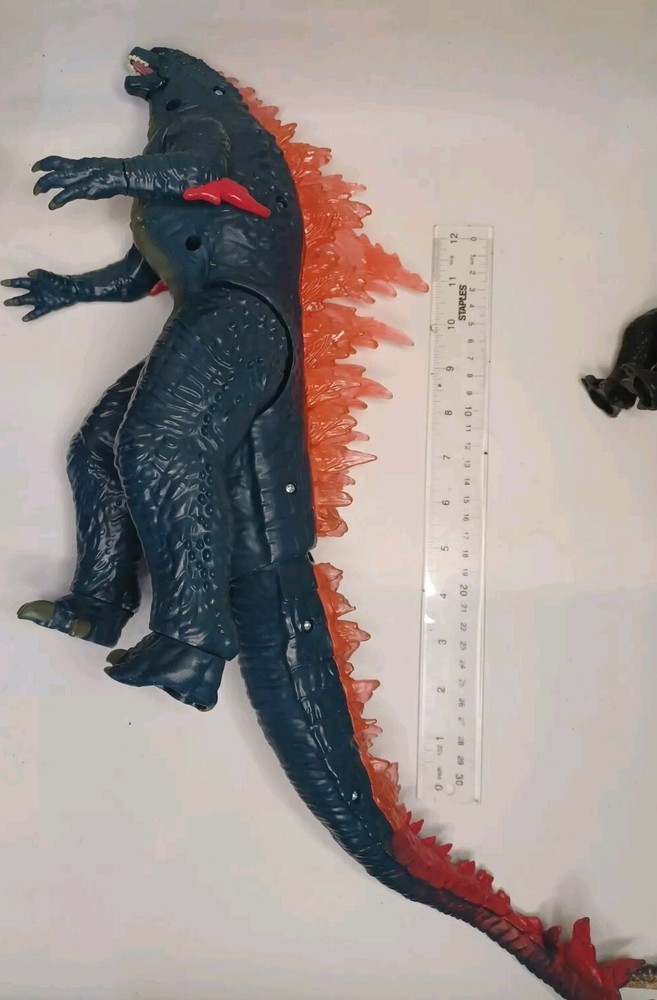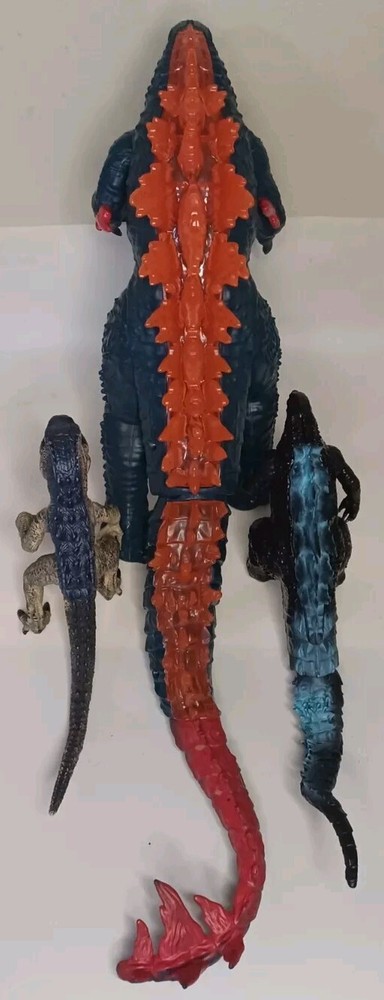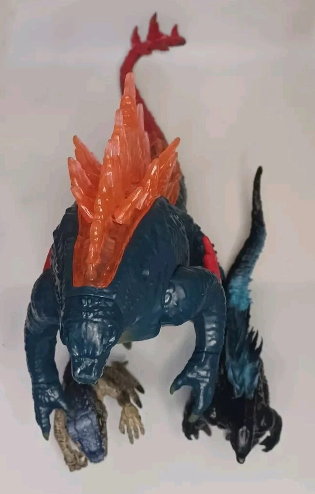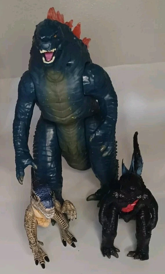 The product is a collectible from Huge ro smaller from Godzilla figures from the Godzilla x Kong product line by Bandai and Toho Baby Godzilla 1998, And It features a giant evolved Godzilla character with a Baby Claw Slasher, and Legendary Mega Godzilla inspired by the movie "Godzilla vs. Kong." The figure is made of plastic, and is designed with multicolor details to represent the iconic Godzilla character. The theme revolves around the Godzilla franchise, making it a desirable item for fans and collectors of Godzilla and monster-themed toys.
