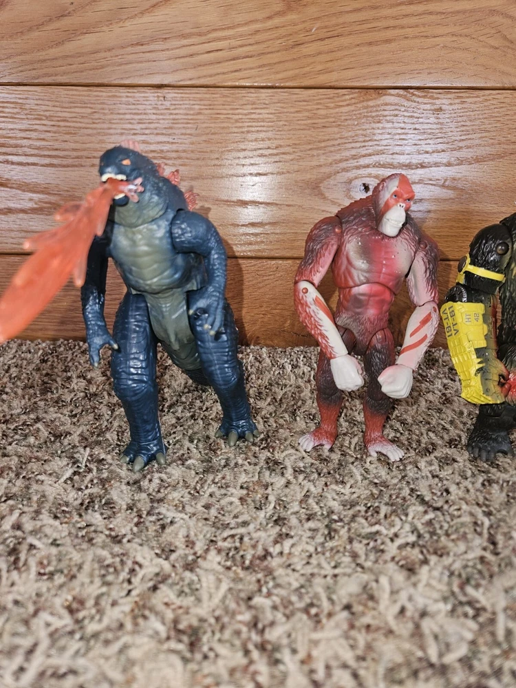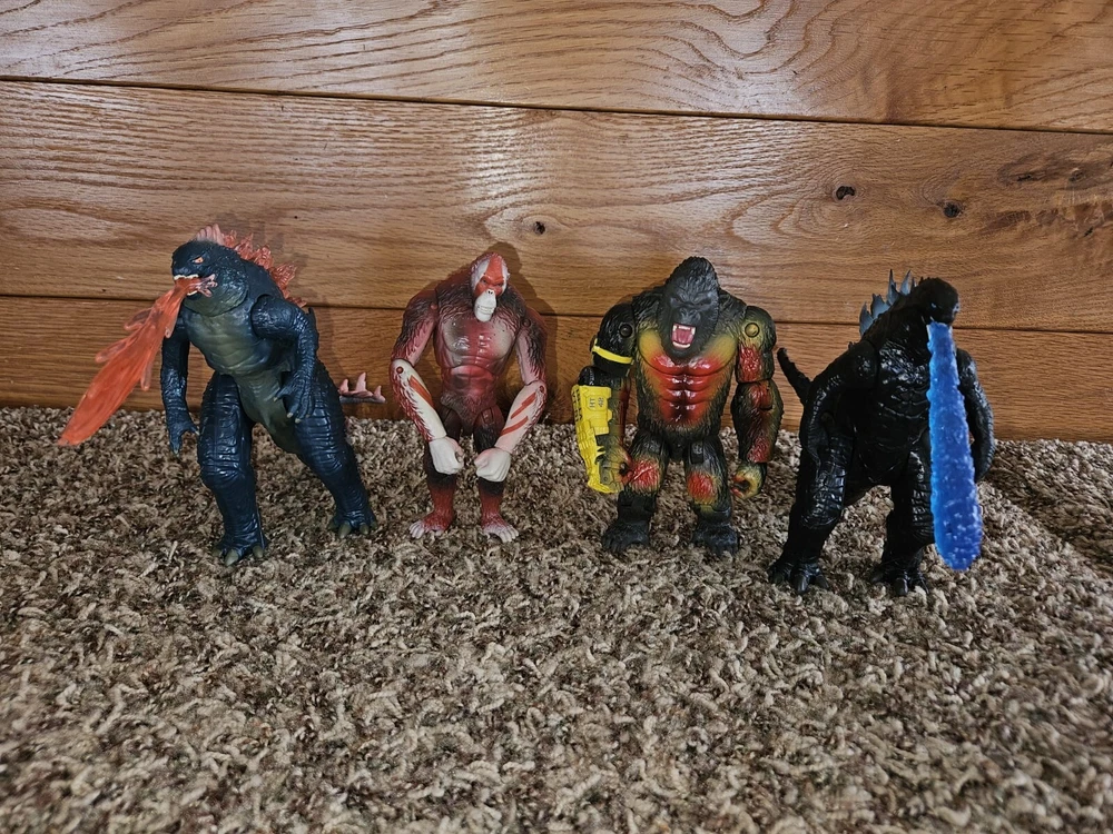 Godzilla x Kong: The New Empire Action Figure Lot consisting of Skar King, Kong, Godzilla with heat ray, and Godzilla Evolved.