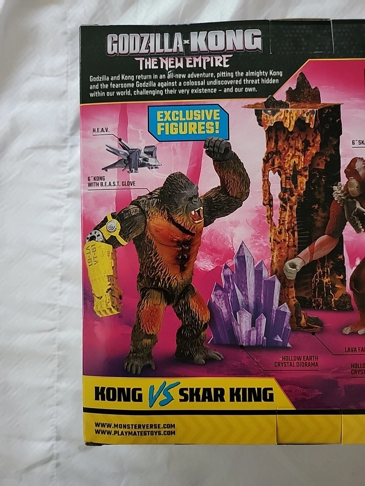 Get ready for an epic battle with the Godzilla x Kong: The New Empire Kong Vs Skar King 2 Pack by Playmates Toys. This set features two iconic monsters from the popular Godzilla x Kong franchise, Skar King and Kong. With highly detailed designs and impressive sizes, these toys are perfect for collectors and fans of all ages. The recommended age range for this set is 4+, making it suitable for young children and adults alike. Whether you're looking to add to your collection or provide a gift for a loved one, the Godzilla x Kong: The New Empire Kong Vs Skar King 2 Pack is sure to impress.