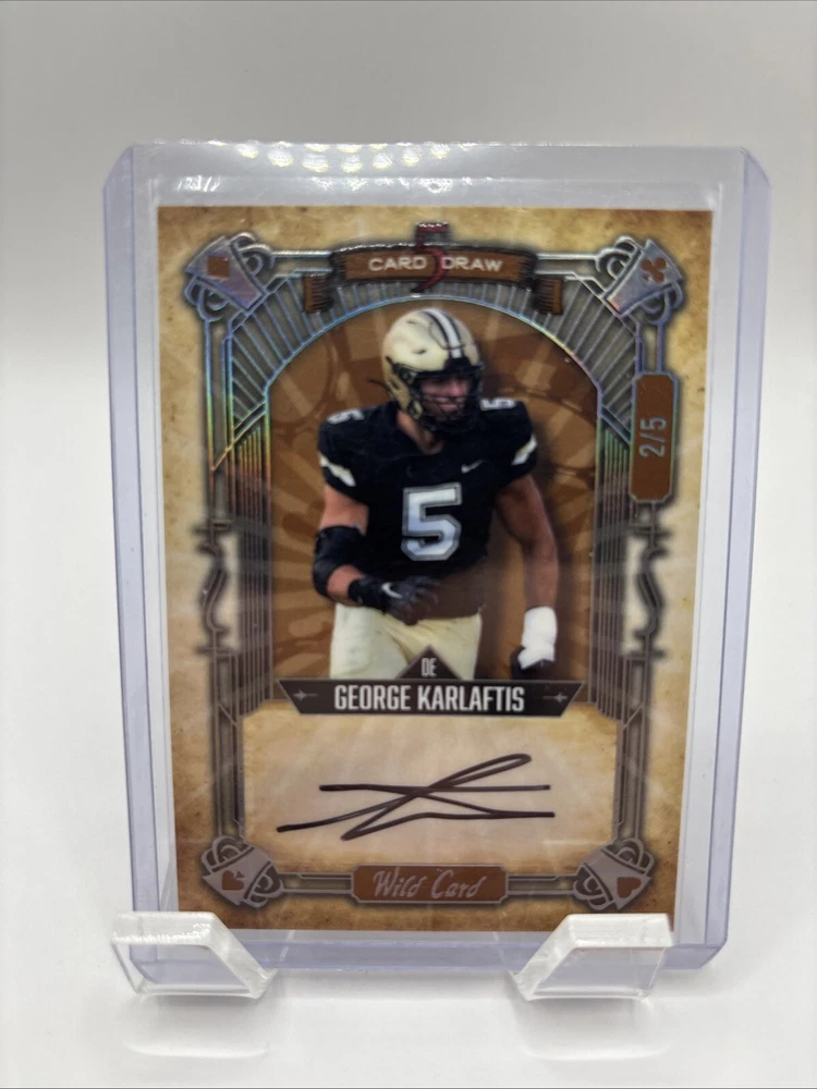 Goerge Karlaftis Wild Card Card 5 Draw Auto 2/5. Condition is Ungraded. Shipped with USPS Ground Advantage.