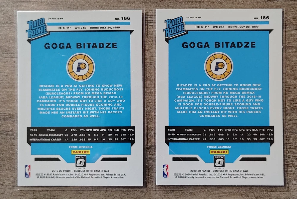 ** Goga Bitadze 2019-20 Panini Donruss Optic Rated Rookie Silver Prizm #166 ** ** Goga Bitadze 2019-20 Panini Donruss Optic Rated Rookie Silver Wave Prizm #166 ** One Touch or display cases are for display purposes only, and they are NOT included unless otherwise noted. All cards will be shipped sleeved and top-loaded, and we always use the best packaging materials available to ensure safe transit. All orders will be shipped within (2) business days. We cannot and will not be held liable for any lost, stolen, or damaged packages if the buyer chooses eBay Standard Shipping because we are unable to track these packages. All Sales are Considered Final! We do not offer any types of refunds or exchanges for any reason unless we fail to describe the item correctly. Have a question, please feel free to reach out and we'll be more than happy to assist. Competitive Consignment Services Available, contact us today for more information. Thank you for taking a look and Happy Collecting!