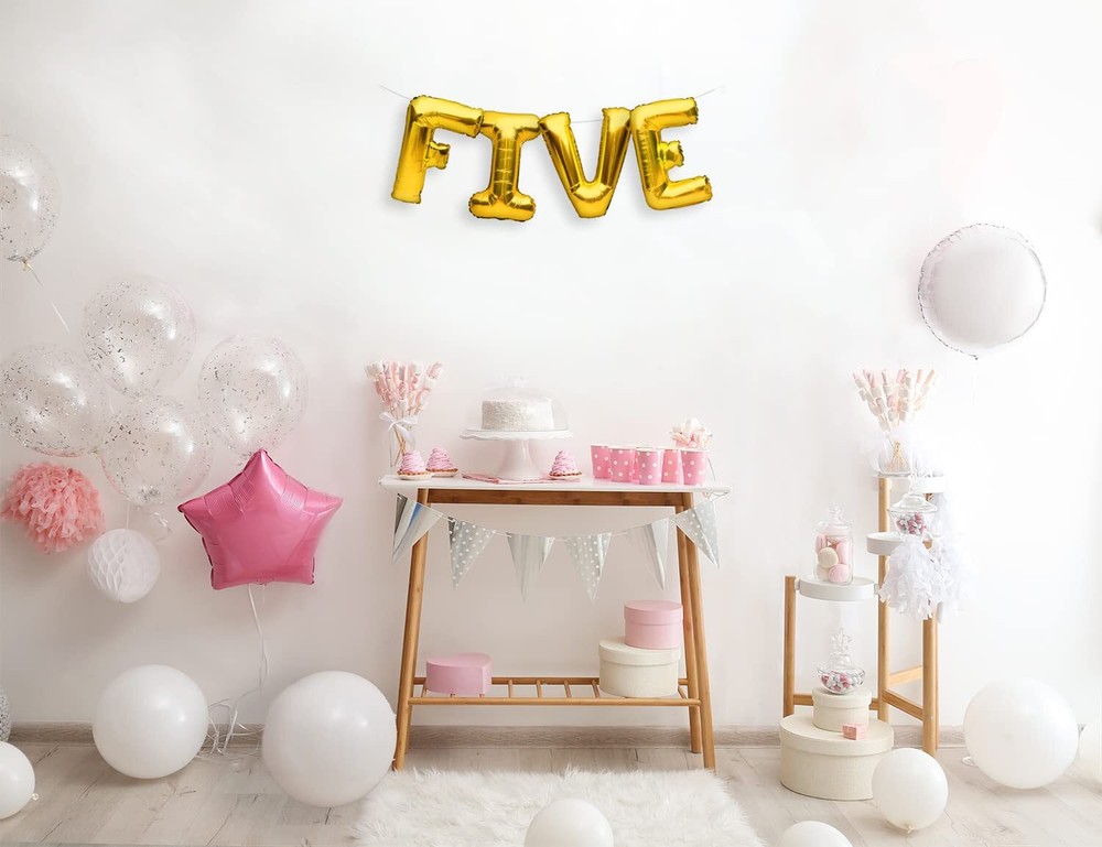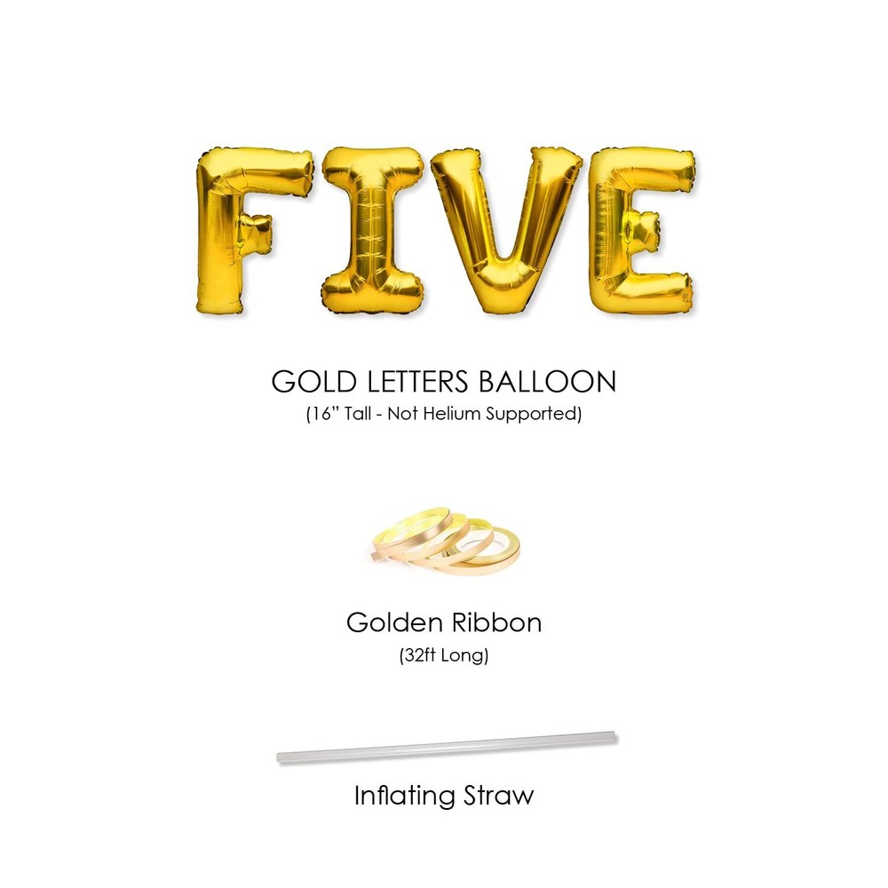 PartyForever FIVE Balloons Banner Gold 5th Birthday Party Decorations Sign 16 Inch Height Gold FIVE Foil Balloons Banner that will stand out and make your Birthday Party rock. A long silver ribbon allows you to adjust the letters for any place. A must have Birthday Party Balloons Sign. The Balloons made of high quality Birthday Party Supplies. Easy Inflating/Deflating and Assembling. Includes 5.9 inch Straw for inflating and deflating the balloons and 32feet long Silver Ribbon. IMPORTANT: Does NOT Support Helium, Can't Float. Should be gently filled 90%-95% full with AIR. Preferably use the the provided straw or air pump. We strive to provide our customers with only the finest products and most attentive service. So don't delay. Order today! 16 Inch Height Gold FIVE Foil Balloons Banner that will stand out and make your Birthday Party rock. A long silver ribbon allows you to adjust the letters for any place. A must have Birthday Party Balloons Sign. The Balloons made of high quality Birthday Party Supplies. Easy Inflating/Deflating and Assembling. Includes 5.9 inch Straw for inflating and deflating the balloons and 32feet long Silver Ribbon. IMPORTANT: Does NOT Support Helium, Can't Float. Should be gently filled 90%-95% full with AIR. Preferably use the the provided straw or air pump. We strive to provide our customers with only the finest products and most attentive service. So don't delay. Order today! Shipping from the USA All of our products are shipped from the USA, ensuring quick delivery to your destination. Payment We offer the following payment methods: PayPal, credit card, bank transfer, and eBay's secure payment system. Free Shipping & Free Returns Shipping within the USA is FREE. Additionally, any return is absolutely free for you. Risk-Free Purchase You have the option to return an item within 30 days without any justification. We cover the return shipping costs! Fast Shipping We ship immediately upon receipt of payment. Generally, the package is delivered within 2-3 days in the USA. If it takes longer, we will contact you. Quality and Costs Made in Europe, USA, China No customs fees or additional charges Total satisfaction guarantee Invoice with declared VAT available upon request in .pdf format Feedback Your feedback is very important to us. After you pay for your purchase, you will automatically receive positive feedback from us.