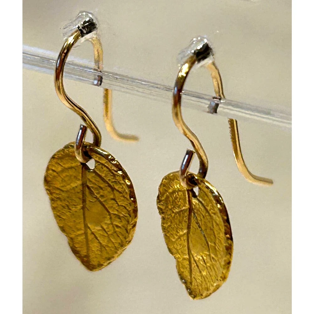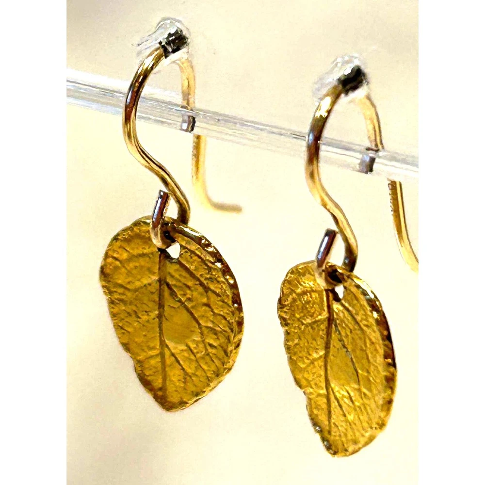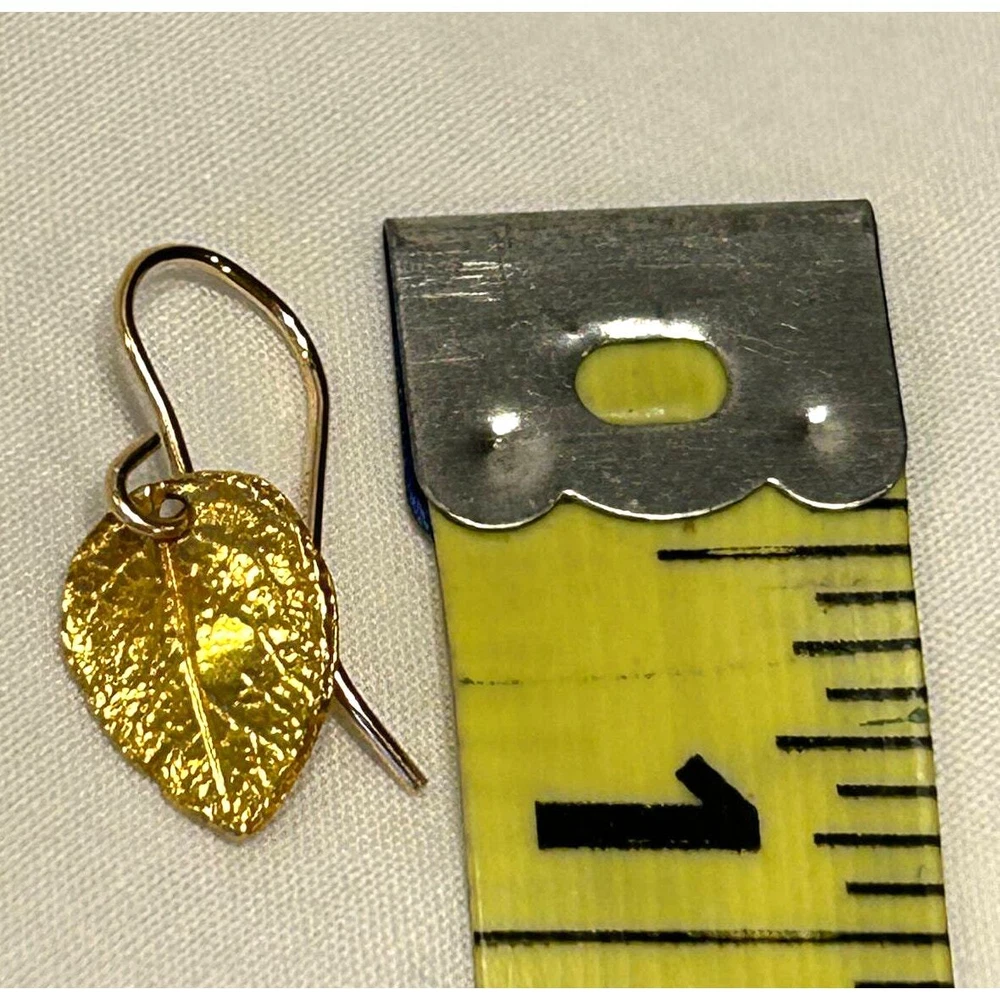 Dainty leaf pierced earrings with nice raised relief design. Marked 925 on back of earrings. The drop measures 3/4 inch and each individual leaf measures 1/2” tall. Perfect for individual wear or lovely as stackable. Perfect gift!