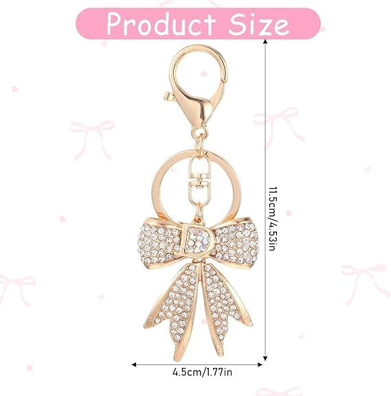 Gold Bow Keychain Rhinestone Bag Charms for Handbags Shiny Purse Charms Cute Key Cute Shape: This gold white keychain is designed with a cute bow shape, which is cute and charming, adding a fashionable and elegant charm to you Quality Materials: This cute bow keychain is made of quality metal and rhinestones, which is eye-catching and shiny, and sparkles under the light Suitable Size: This bag charm for handbag is about 4.5 x 11.5cm / 1.77 x 4.53in, which is light and compact, adding a charming feeling to your items Widely Applicable: This bow keychain can be widely used in purses, bags, handbags, backpacks, etc., and is also very suitable for car keys, etc. Ideal Gift: This cute keychain is exquisite and beautiful, and it is very suitable as a birthday, anniversary gift for mothers, wives, friends, etc. Return Policy: We offer a 30 day return policy from the receiving date. Please contact us for a Free Return Label. Please use our return label so it will go back to our supplier and we can do a refund or replacement afterwards. Feedback: Your satisfaction is very important to us! If you have any problem with your order, please contact us and we will do our very best to make you satisfied. As long as you are happy with your purchase, please leave a positive feedback for us. We will always leave you a positive feedback in return. If you have any problem with your purchase, please do not leave a negative feedback. Please Contact us ... and your issue will be solved quickly and positively We are a small family-owned business trying to make a living, not a huge company that does not care ... We will ALWAYS do our best for you!
