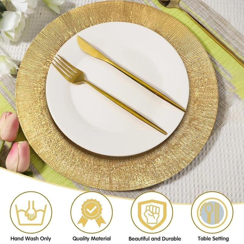 Store category Sign Up Now ! You may also like Product Description Bullet Points: Efficient Reception Solution: These 100 gold chargers plates offer a lavish touch to any event's tablescape. With a sufficient quantity for caterers, event planners, and homeowners, they provide an efficient and elegant solution for hosting receptions Elegant Design: Made of gold PP, these charger plates feature a distinctive texture on their surfaces to create an elegant design that creates a luxurious feeling. This unique addition improves your dining experience while making guests feel special and valued, leaving a lasting impression on their minds Upscale Table Setting: Each dinner plate, about 13 inches in size, is designed with wide edges to effectively prevent food spillage and keep the table clean; also increases the stability and practicality Widely Applicable: Suitable for weddings, birthdays, and cultural events, these gold charger plates add to the fun of dining outdoors or at home, making your food look more attractive Easy to Clean: Hosting made easy with these gold charger plates that wipe clean effortlessly with a damp cloth. Crafted with sturdy elegance, they improve any setting and are easy to store at room temperature Our Gold Charger Plates provide a touch of elegance to your special occasions. With sufficient quantity, the plates have a unique texture on the surfaces which also increases stability and practicality. Perfect for weddings, they can be stored at room temperature for convenience. Specifications: Product name: Gold Charger Plate Product color: gold Product material: PP Product size: about 33x33x1cm/13x13x0.4 inches Packing List: 100* Gold Charger Plates Notes: 1. Due to different lighting and screen settings, the item color may be slightly different from the picture. 2. Due to different manual measurements, please allow a 1-2cm difference in size. Payment Delivery details Terms of sales About us Feedback & DSRs Payment Before you palce an order, please kindly make sure that you have a paypal account. We accept PAYPAL payment only. Payment should be completed within 2 days after auction closed, or unpaid dispute will be filed for an closing auction. An unpaid case will be filled after 4 days. Delivery details We ship to your eBay address. Each package will be shipped to US by UPS Regular Parcel with tracking number. Please check your shipping address carefully before checkout, it can't be changed if order completed. All items will be shipped within 1-2 business day upon receipt of payment.Orders placed on weekend will be shipped within 3 days. If you do not receive your item in 7-10 business days.please contact us immediately for further assistance. We will be responsible for any damages or losses incurred in the shipping process. About us We maintain high standards of excellence FIVE STAR and strive for 100% customer satisfaction! Positive Feedback is very important to us. We hope that you contact us immediately Before you give us neutral or negative feedback, so that we can satisfactorily address your concerns. We promise to offer the lowest price and high quality produce. Our working time: From Monday to Friday(9:30 am to 18:00pm), we don't working on holidays ,hope you can understand and know that , thank you. Please always talk to us via ebay Message. We appreciate your business and look forward to growing our e-Bay sales with satisfied customers. Feedback Contact us If you have any questions, please feel free to contact with us by ebay Message during our business hours ( 9:30a.m. to 5:30 p.m.), or email us through eBay, we will try our best to help you to resolve it. For any presale or after-sale questions,please do feel free to email us! Due to the time difference, each email will be replied within 1 working day,and weekend will be delayed a bit. Feedback
