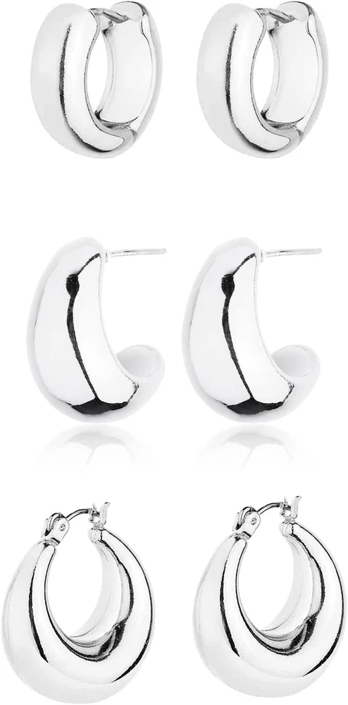 Gold Chunky Hoop Earrings Set for Women, 14K Gold Plated Twisted Huggie Hoop Ear
