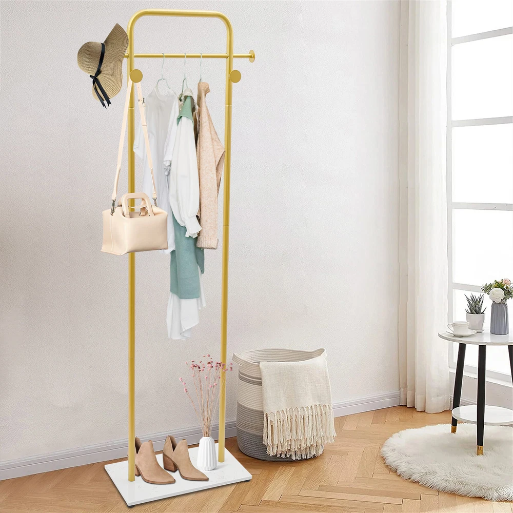 Gold Coat Rack Free-Standing Clothes Hanger Stand with Shelves Holds 50lbs