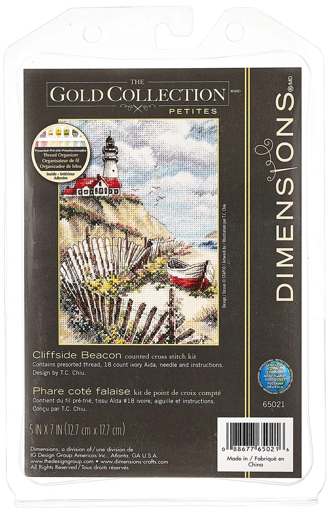 Stitch a scenic piece of beach house décor with the Gold Collection Cliffside Beacon Counted Cross Stitch Kit! This advanced cross stitch pattern features a picturesque lighthouse on a cliffside beach, and uses full and half stitches to create exquisite detail specifically designed for experienced needlecrafters. Includes 18 count ivory Aida, presorted cotton thread, needle, and easy instructions. Completed cross stitch measures 5'' x 7''. Cliffside Beacon advanced counted cross stitch kit includes ivory 18 count Aida, presorted cotton thread, needle, and easy instructions. Completed cliffside lighthouse cross stitch kit measures 5'' x 7'' This advanced cross stitch pattern features a picture-perfect beach and lighthouse. Specifically designed for experienced needlecrafters, this lighthouse cross stitch uses full and half stitches to create magnificent details. Frame and hang your completed lighthouse cross stitch for a -of-a-kind piece of beach house décor!