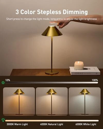 Menu 1. We require immediate payment. 2. We currently accept payment via eBay managed payments only. 3. Once payment is cleared, we will dispatch your shipment within 1-3 business days. Please refer to the "Shipping" tab for more information regarding shipping speed to your destination. Gold Cordless Table Lamp, Rechargeable Battery Lamps for Home, 3 Color Stepless Dimmable Touch Lamp, Wireless Lamp for Bedroom/Living Room Product description [Gold Cordless Lamp] The gold table lamp is easy to install and portable, it can provide lighting anytime and anyw, suitable for bedrooms, living rooms and hallways. The small lamp is made with a high-quality metal shade and a sturdy metal base to prevent tipping over. [3-Color Stepless Dimming] Quickly touch the button on the top of the lamp to adjust the color temperature (3000K/4000K/6000K), long touch to freely adjust the brightness from 10%-100%. [Rechargeable Battery Lamp] Built-in 4000mAh rechargeable battery, fully charged can be used for 6-20 hours, the full charge time is about 5 hours (used with 5V/2A adapter, not included). Provide you with sufficient lighting anytime and anyw. [Gentle Eye Protection] Our LED lamp uses a round light source design for even illumination. With no flickering or glare, it provides a comfortable lighting experience. [Collect before You Buy] After-sales consultation within 2 years, offers you a suitable solution. If you have any questions, please email us via ( on the shop name at the bottom of the cart) and we will reply to your message within 24 hours. PLEASE MESSAGE US IF YOU HAVE ANY OTHER QUESTIONS, AND MANY THANKS FOR READING ALL OF THIS. Copyright ©#. All Rights Reserved.