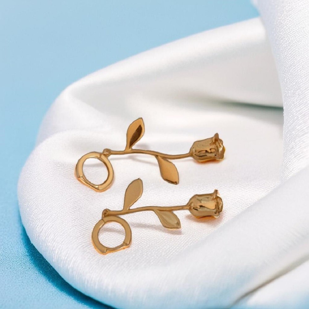Gold Dangle Rose Earrings – Elegant Gift for Her