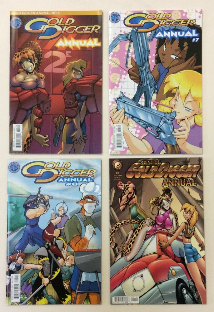 GOLD DIGGER ANNUAL #1-#8 & BEST OF #1 AVERAGE GRADE: VF to NM- ANTARCTIC PRESS 1995-2002 Overseas bidders, please use the Ebay shipping calculator to determine postage costs. International buyers are responsible for all customs and/or taxes, as it will be declared at the hammer price, and the item will not be declared as a gift. We have been a trusted name in the comics & collectibles field for over 35 years. We carefully grade each item, and ensure that it is complete, original, and authentic. We ship all of our items within one business day, and pack it professionally and securely. Hopefully you will find our descriptions accurate, and are thrilled with your item when it arrives. If you have any questions about your item (before or after it arrives), please feel free to contact us. Our customer service department will do everything possible to make you a happy customer!