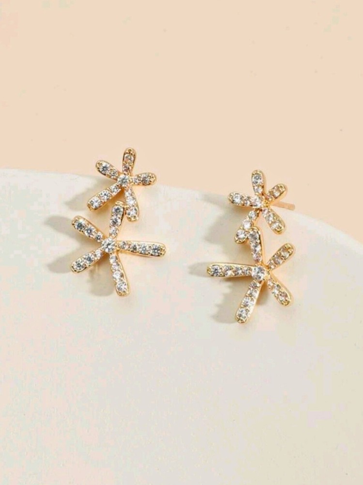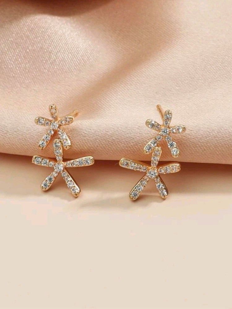 Gold Ear Climber Flower Earrings Stud Birthday Gifts For Women