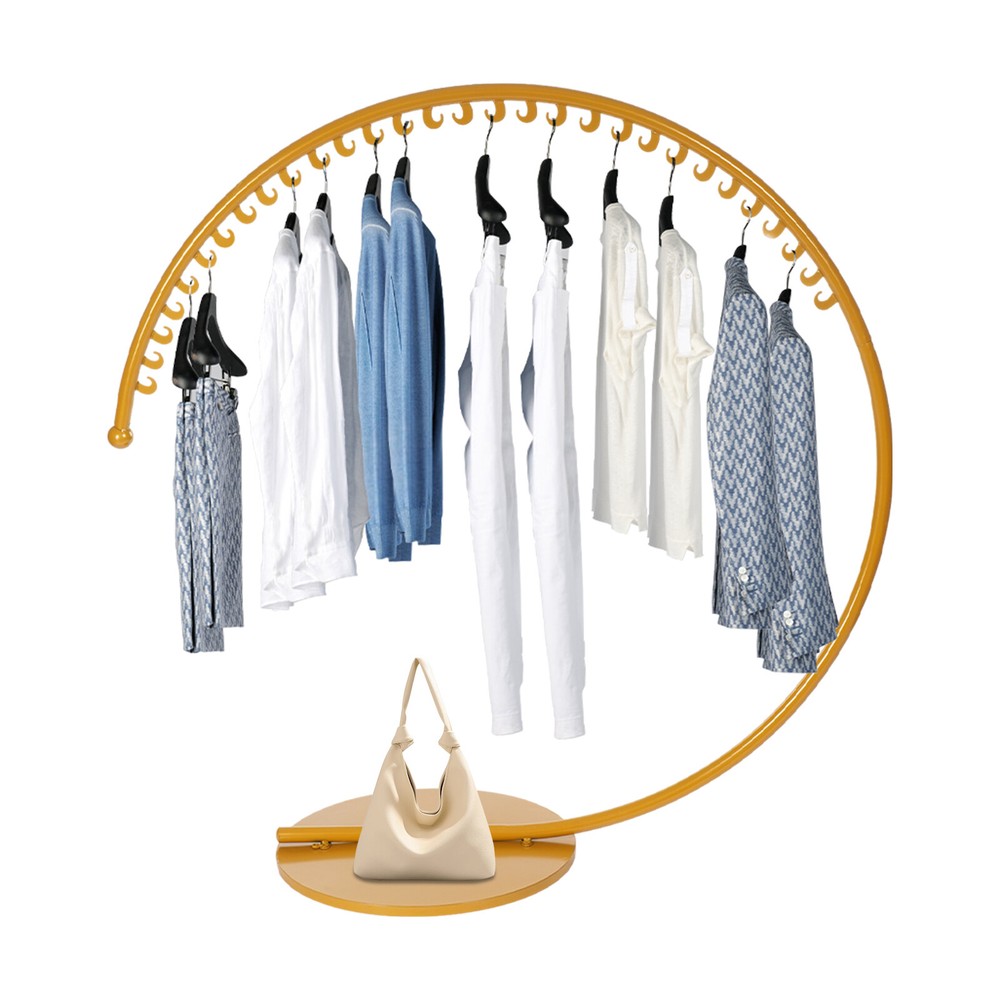 Gold Freestanding Clothing Display Rack Modern Coat Rack W/ 30 Moon-shaped Hooks Welcome to our store~ Description The coat rack measuring an ample 59.05in in height, is a testament to elegant functionality and durability designed for spaces demanding both style and practicality. Crafted with meticulous attention to detail, this freestanding coat rack not only serves as a clothes rack but also stands as a modern decoration that effortlessly complements any setting, from the sophistication of a boutique to the warmth of a modern household. Key Features Sturdy and Durable: This product is made of high-quality iron with a high-temperature baking paint process, which has good wear resistance , rust resistance , and a long service life. Fashionable Style: The C-shaped exterior design, classic gold color, and full, even, vibrant hue make this stylish and elegant product pair well with your furniture style. Strong Load-bearing Capacity: The solid construction, thickened base, and strong connection between the parts make this product withstand a heavy load of 551.15 lbs , you can store your daily clothes with confidence. Large Capacity: The 30 moon-shaped hooks are enough for your daily storage needs to avoid stacking your clothes, making it easier to place and access items. Moreover, the round base can hold shoes (not included), giving you more organized storage. Multi-function: This product can be used as a display rack, storage rack, or drying rack. You can not only hang skirts, pants, jackets, shirts but also bags, hats, scarves, towels and ties. It is suitable for a variety of scenes and needs. Suitable Height: It is high enough (59.05in) to prevent most clothes from touching the floor or getting dirty, so you can hang your pants, long skirts, jackets (not included), etc. with confidence. Simple Installation: The simple structure and complete accessories allow even novice installers to install it quickly and accurately. Easy to Clean: Thanks to the smooth surface, simple structure, and open design, you can easily wipe off the dirt on it with a soft cloth (not included). Ideal Gift: With a beautiful appearance and good performance, it would be a wonderful surprise for your wife, mother, daughter, friend, or loved ones. Details Sturdy Base: The round base (23.62 in) can stabilize this product well and prevent it from tipping over. Smooth Edges: The smooth edges not only add to the aesthetics of the product but also improve the safety of use. Application It can be used to hang jackets, scarves, hats, school bags, handbags, purses, suits, costumes, place shoes, and so on. It is suitable for retail stores, boutiques, children's stores, clothing stores, dormitories, bedrooms, living rooms, entrances, children's rooms, laundry rooms, apartments, hotels, dormitories, studios, dance studios, and other places. It can be used as a display rack, storage rack, or drying rack. Specifications Color: Gold Style: Modern Material: Iron Shape: C-shape Process: High-temperature Baking Paint Assembly Required: Yes Mounting Type: Free Standing Recommended Uses For Product: Clothes Total Load Capacity: 250kg/ 551.15 lbs Number of Hooks: 30 Product Size(D*H): 1.5*1.5m/ 4.92 ft Base Diameter: 60cm/ 23.62in Package Size: 155*65*7.5cm/61.02*25.59*2.95in Gross Weight: 8kg/17.64lbs Net Weight: 7.5kg/16.53lbs Package Included 1* Coat Rack 4* Screws Notes Please note that this product does not include any clothes. Please check the size carefully before ordering. Please do not expose the product to direct sunlight for extended periods of use. Please do not touch the product with sharp items. Please allow the slight color difference caused by the shooting light and 1-3cm error due to manual measurement, and make sure you do not mind before you order. Payment Delivery details Terms of sales About us Contact us Payment We accept ebay payment 。 Fees such as import duties, taxes are not included in the item price or shipping costs. These charges are the buyer's responsibility. Delivery details Shipping: 2-9 working days to: USA Terms of sales We maintain high standards of excellence and strive for hundred percent customer satisfaction. Feedback is very important to us. We hope that you contact us immediately before you give neutral or negative feedback, so that we can address your concerns. It is impossible to address issues if we do not know about them! About us Your satis faction is our ultimate goal. We work hard to earn your trust and future business. Our certified technicians have tested each item before shipping. The unit comes with 1 year limited warranty on all manufacturing defects. a) If you receive a defective item, you may return it or ask for a discount. Please contact us within 14 days after you receive the package. b) What you returned must be intact and in its original packaging as re? u. Customer is responsible for shipping costs of the returned item. c) We will cover the cost of shipping back t with the shipping rate indicated in the registration page. We will send you a new unit or refund the full payment you paid. Thank you. Contact us Business Hour Business Hour: Monday To Friday: 8:30 AM to 5:00 PM (Beijing China time) Due to time zones, our reply to your questions may not be immediately. But within above working time, we will reply your email within 24 hours. If it's non-workdays, please kindly be patient and wait till Monday. Please contact us with ebay message. Please feel free to contact us if you have any questions. Monday To Friday: 8:30 AM to 5:00 PM (Beijing China time) Due to time zones, our reply to your questions may not be immediately. But within above working time, we will reply your email within 24 hours. If it's non-workdays, please kindly be patient and wait till Monday. Please contact us with ebay message. Please feel free to contact us if you have any questions. Highlights Long service life, stable performance, High quality W/ warranty! Warranty 3-year Warranty Features Nice and Practi