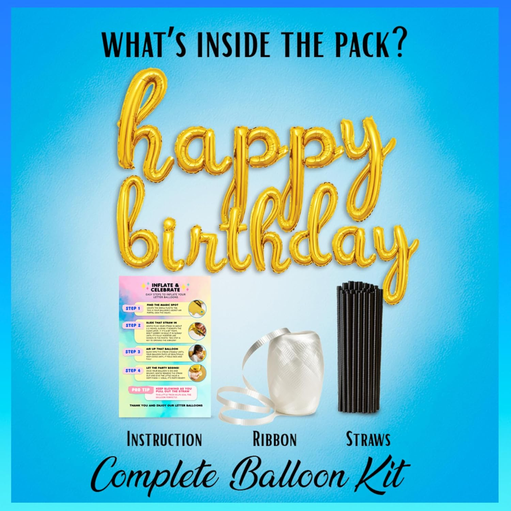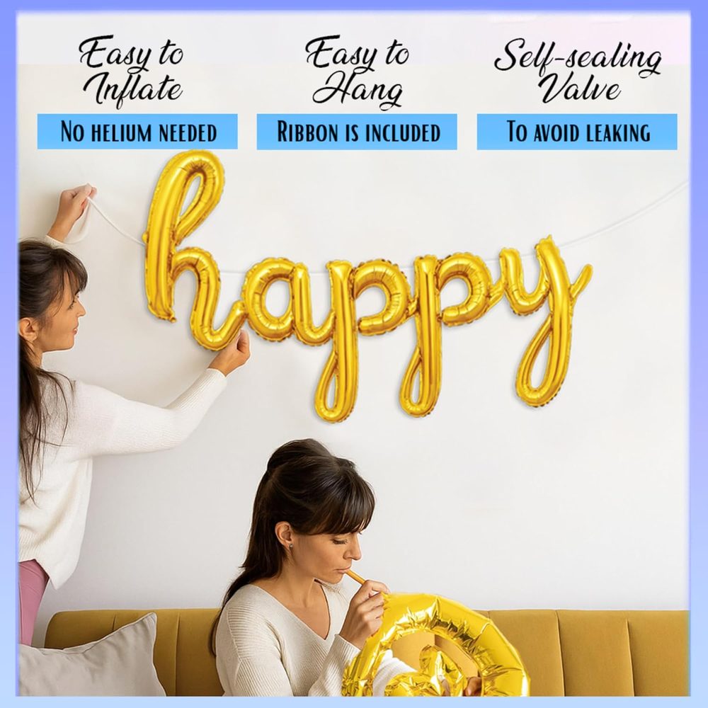 Store New Arrivals Add to Favorite View Feedback Contact Fast deliveries to the customer's home Quality customer service John Make the customers happy! Gold Happy Birthday Balloons Banner | Script/Cursive Gold Letter Balloon Sign for Birthday Party Decor/Decoration | Foil Mylar Happy Birthday Banner Description Mylar π Cursive Stylish Balloon Banner - Happy birthday sign that will refine the look of your party π Shiny, Elegant Decorations - create a brilliant atmosphere for your party or celebration! π Reusable And Easy To Inflate β These versatile balloons can also be deflated and reused! π Includes Essential Accessories β Straws to fill them up and a ribbon to hang them π― Guaranteed Satisfaction β Gala Supplies party balloons are designed with superior craftsmanship and come backed by a no-questions-asked guarantee for a risk-free purchase you can trust Product description 1 Gold Happy Birthday 2 Silver Happy Birthday 3 Black Happy Birthday 4 Pink Happy Birthday CPSIA Cautionary Statement Choking Hazard - Balloon Unit Count 1 Count Item dimensions L x W x H 2.87 x 0.13 x 6.22 inches Color Gold Included Components Tape Product Dimensions 2.87 x 0.13 x 6.22 inches Material Foil Mylar Happy Birthday Banner, aluminium cursive script letter balloons Item Weight 3.2 ounces Theme Letter Occasion Birthday Size 1 Count (Pack of 1) ABOUT US We offer the best prices around on high quality products. Our E-store includes media such as books, movies, music and games while offering electronics, toys, sporting apparel, clothing, tools, general home, garden items and more. SHIPPING We are always working hard to ensure your package arrives as soon as possible. Please understand that some factors like weather, high postal traffic, and the performance of shipping companies are outside of our control. We offer free shipping to the lower 48 states and ship within 2 business days of payment, usually sooner. We do not accept P.O. Boxes. Please provide a physical address. For shipping outside of the continental USA, we only use eBay's Global Shipping Program. The item is shipped to KY and then sent to the rest of the world. International customers are responsible for all duties and taxes. Continue to 'check out' to calculate costs for shipping the item to your country. Messages regarding eBay's Global Shipping Program MUST be directed at eBay EXCLUSIVELY. RETURNS We offer a 30-Day Return Policy on items in which you are not completely satisfied with. You have the option of a full-refund or an exchange of the item. No returns are available on items shipped outside of the USA PAYMENT We accept PayPal. CONTACT US This page content is yet to come Please ad us to your favorite seller and visit again later Thank You CUSTOMER SATISFACTION We try our very best to make sure every customer is completely satisfied. If there's a problem, message us! We're happy to help. WE ACCEPT