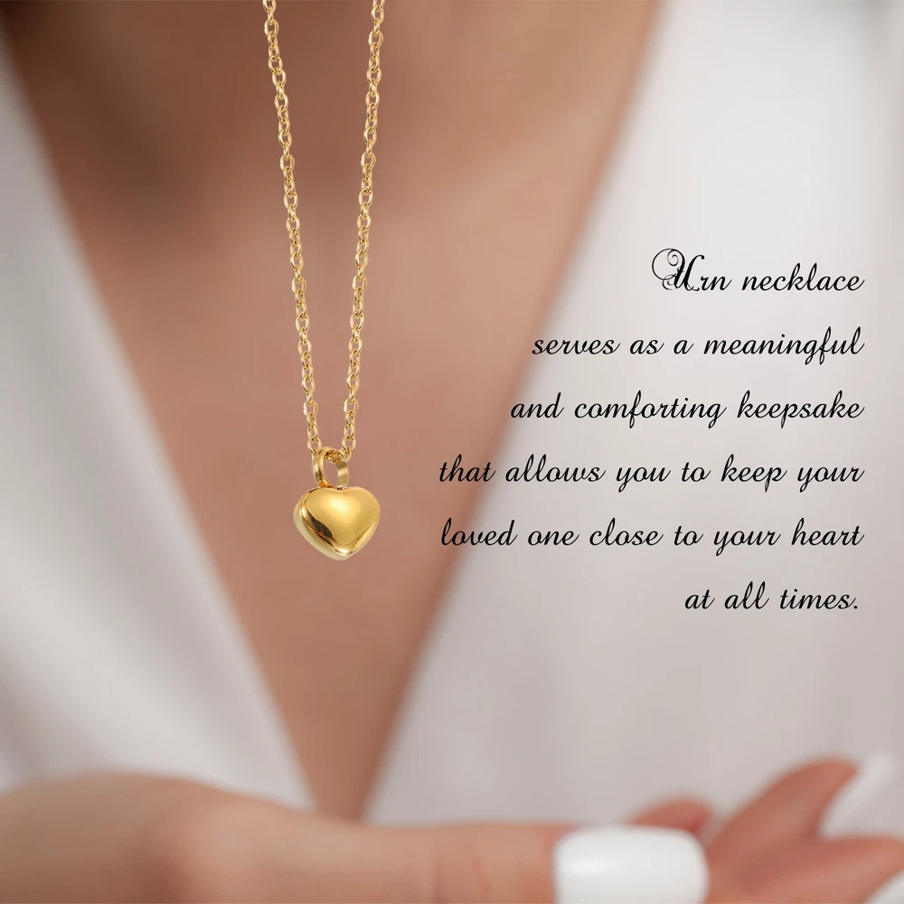 Gold Heart Cremation Necklace for Ashes - Memorial Keepsake for Family