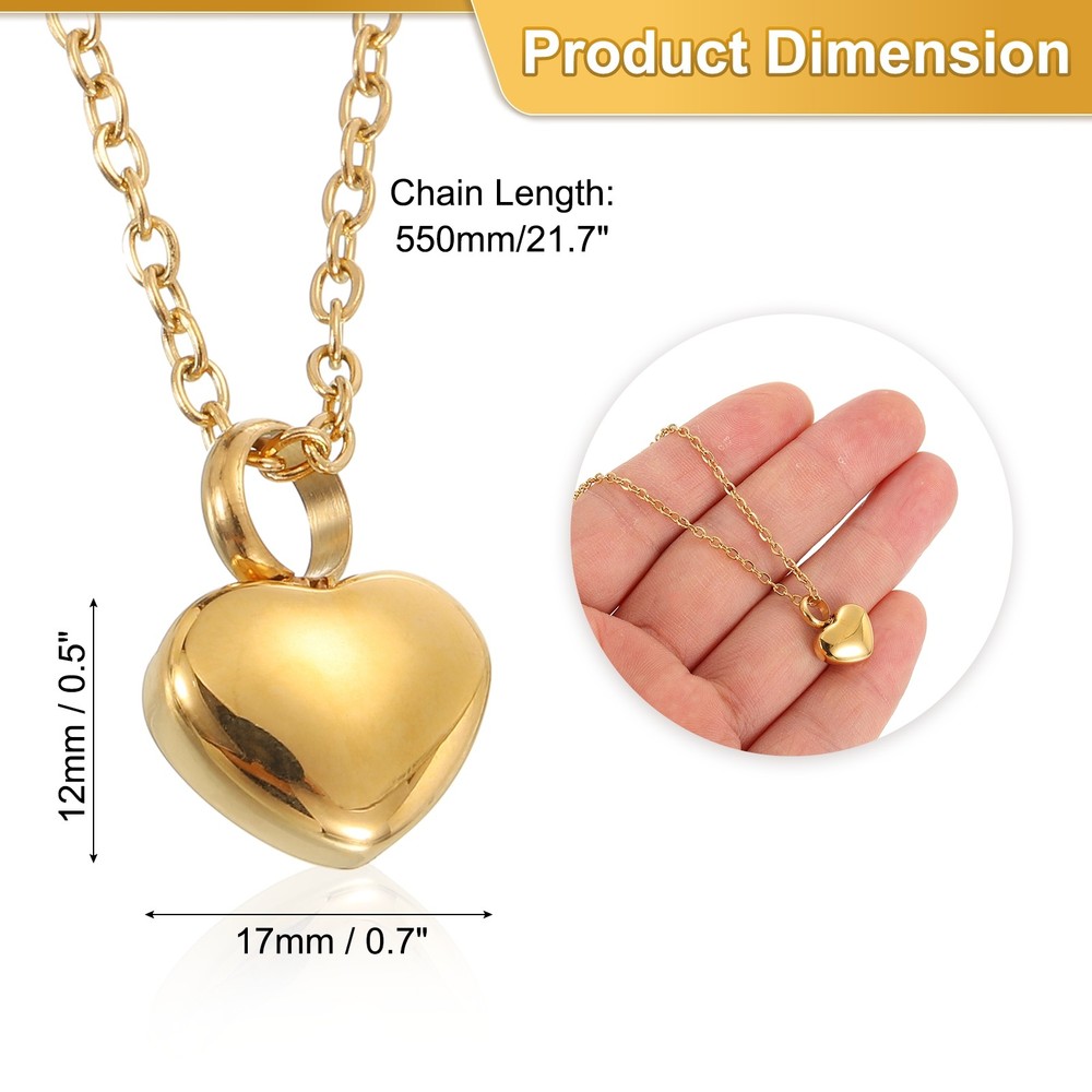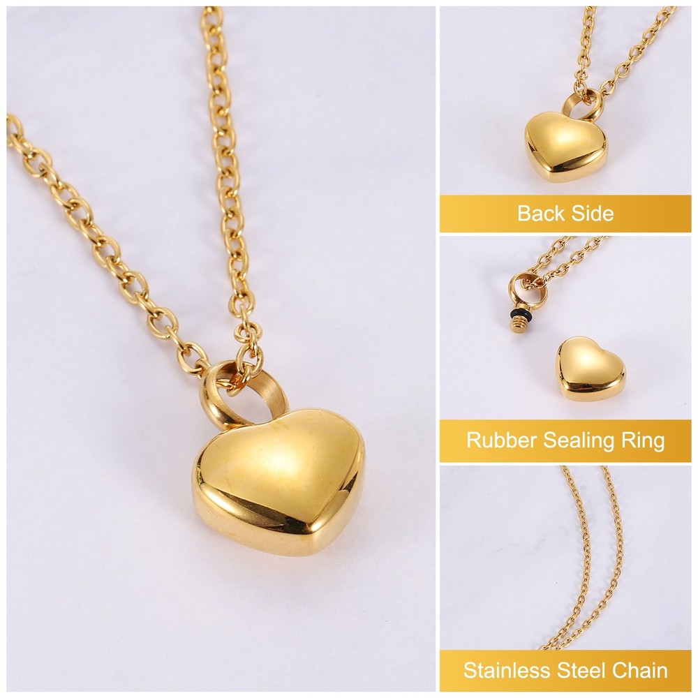 Document Description:Cremation Jewelry - You will never lose the memory and keep your loved one close to your heart at all times, they will always be with you, and keep memories close at heart. Carry it with you where you are closest to the heart, as a decoration, or as a great way to your loved ones.Multi-function Necklace - The Waterproof Keepsake Pendant is suitable for memorial purposes. The interior of the pendant is empty and you can put small quantities of dried flowers, perfumes, essential oils, locks of hair, clay, or sand. Unique Gift - The ashes chain has a beautiful velvet pouch and filling kit. A simple and delicate urn necklace is a great gift to give in memory of a loved one, preserving precious memories beautifully.Specification:Size: 17 x 12 mm/0.7 x 0.5 inches(L*W)Length: 550mm/21.7 inchesShape: HeartColor: Gold TonePackage Content: 1 x stainless steel pendant necklace, 1 x funnel, 1 x mini screwdriver, 1 x velvet bag, 1 x gift box, 1 x spoon and 1 x cloth Heart Cremation Necklace for Ashes for Family(Gold) Description: Cremation Jewelry - You will never lose the memory and keep your loved one close to your heart at all times, they will always be with you, and keep memories close at heart. Carry it with you where you are closest to the heart, as a decoration, or as a great way to your loved ones. Multi-function Necklace - The Waterproof Keepsake Pendant is suitable for memorial purposes. The interior of the pendant is empty and you can put small quantities of dried flowers, perfumes, essential oils, locks of hair, clay, or sand. Unique Gift - The ashes chain has a beautiful velvet pouch and filling kit. A simple and delicate urn necklace is a great gift to give in memory of a loved one, preserving precious memories beautifully. Specification: Size: 17 x 12 mm/0.7 x 0.5 inches(L*W) Length: 550mm/21.7 inches Shape: Heart Color: Gold Tone Package Content: 1 x stainless steel pendant necklace, 1 x funnel, 1 x mini screwdriver, 1 x velvet bag, 1 x gift box, 1 x spoon and 1 x cloth Hot Item Payment 1.We accept eBay payment . 2.Payment must be received within 7 business days of auction closing. Shipping 1.We ship to your eBay or Paypal address. Please make sure your eBay and Paypal address is correct before you pay. 2.Items will be shipped within 1-3 business day when we received payment. 3.Delivery time depends on destination and other factors. Description Policy Heart Cremation Necklace for Ashes for Family(Gold) Description: Cremation Jewelry - You will never lose the memory and keep your loved one close to your heart at all times, they will always be with you, and keep memories close at heart. Carry it with you where you are closest to the heart, as a decoration, or as a great way to your loved ones. Multi-function Necklace - The Waterproof Keepsake Pendant is suitable for memorial purposes. The interior of the pendant is empty and you can put small quantities of dried flowers, perfumes, essential oils, locks of hair, clay, or sand. Unique Gift - The ashes chain has a beautiful velvet pouch and filling kit. A simple and delicate urn necklace is a great gift to give in memory of a loved one, preserving precious memories beautifully. Specification: Size: 17 x 12 mm/0.7 x 0.5 inches(L*W) Length: 550mm/21.7 inches Shape: Heart Color: Gold Tone Package Content: 1 x stainless steel pendant necklace, 1 x funnel, 1 x mini screwdriver, 1 x velvet bag, 1 x gift box, 1 x spoon and 1 x cloth Hot Item Payment 1.We accept eBay payment . 2.Payment must be received within 7 business days of auction closing. Shipping 1.We ship to your eBay or Paypal address. Please make sure your eBay and Paypal address is correct before you pay. 2.Items will be shipped within 1-3 business day when we received payment. 3.Delivery time depends on destination and other factors.