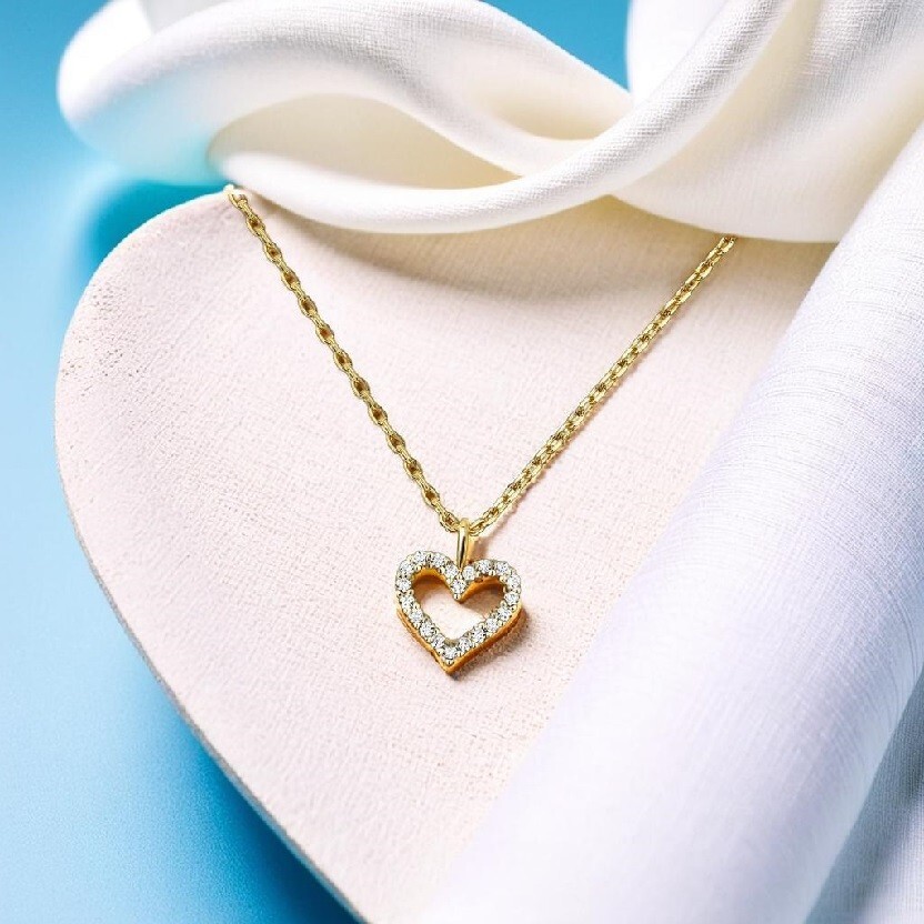 Gold Heart Pendant Necklace, Cubic Zirconia Stone, Adjustable 45cm Chain Gift UK