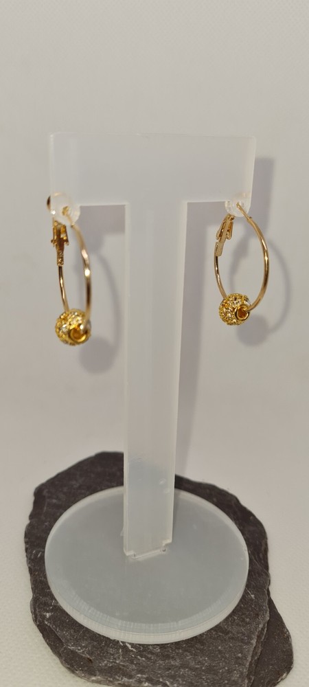 These brand new hoop earrings are crafted from gold stainless steel , featuring a rhinestoe charm design, with clip fastening. Perfect for adding a touch of chic style to any outfit.