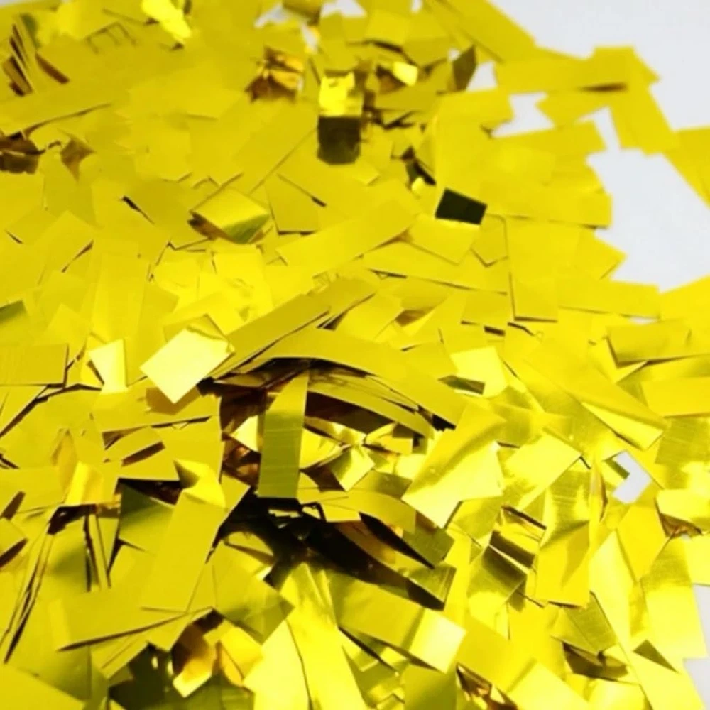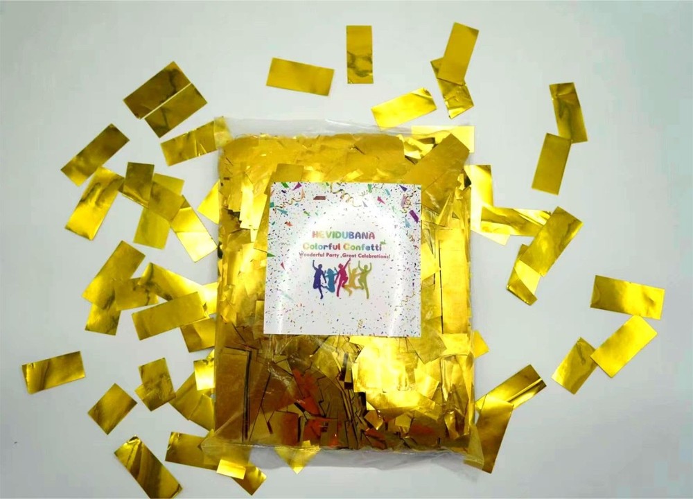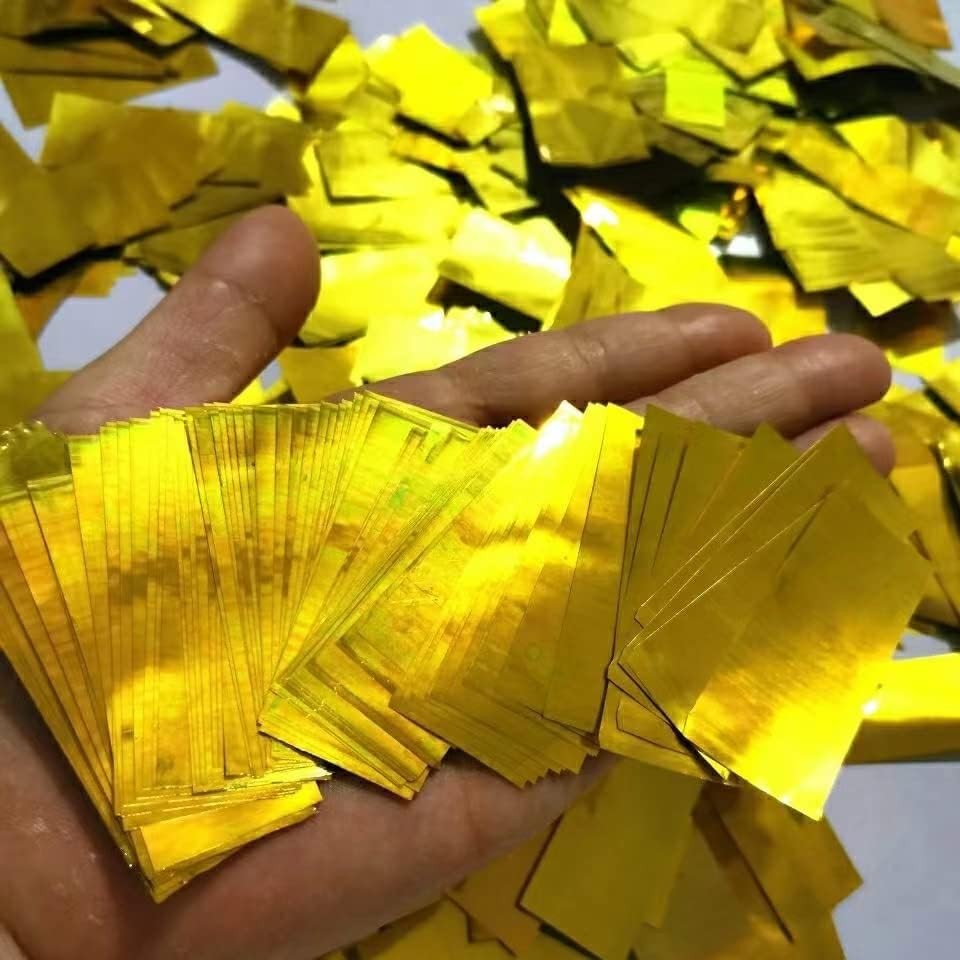Gold Metallic Confetti Paper - Flame Retardant Foil Confetti Great for Birthday Parties,Concerts,Celebrations,Weddings,Confetti Party,Graduation Ceremonies Includes a bag of 2.2 pounds golden confetti glitter papers. Made of metallic foil ,Average size of each piece is 2 x 5 cm . The material of confetti is safe, flame fireproof and environmentally .confetti Spraying will not cause personal injury. Suitable for birthday parties, special moment, celebrations, decorations, weddings, anniversaries and any occasion! It is also very suitable for refilling confetti sticks and confetti launchers. Confetti with bright gold yellow color,beautiful confetti slowly falls from top to bottom, glittering, creating a romantic atmosphere. Our confetti paper are easy to use,If you are not satisfied with your purchase, please contact us and we will try our best to solve your problem!