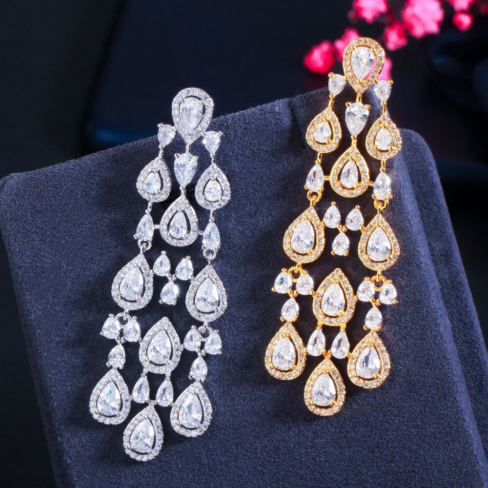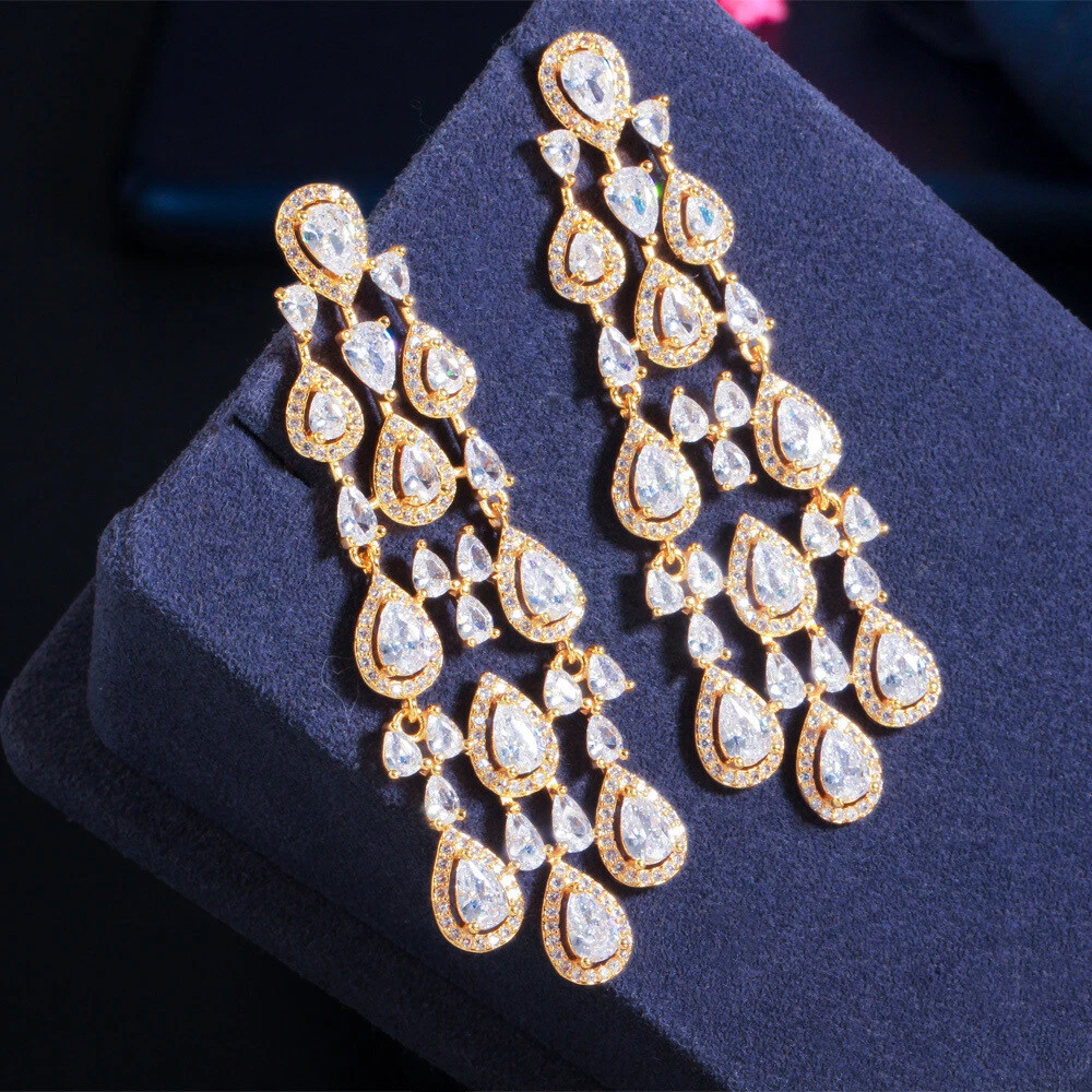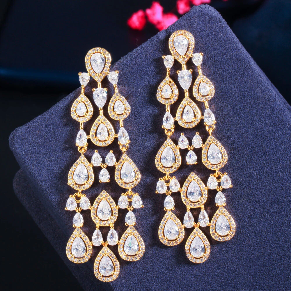 Gold Plated Cubic Zirconia Long Chandelier Drop Earrings for Women Wedding Party There’s an old saying that: Jewelry is woman’s best friend. And one appropriate luxury jewelry helps to spice up your charm and beauty. And here’s the reason why you choose us: ★ We adopts high-grade Cubic Zirconia, which displays pure and fascinating color; ★ All our items are Elaborate, Gold Plated (white gold plated/yellow gold plated/black gold plated), by which the texture is smooth and with fancy look, and will be appropriate for so many occasions; ★ Our items are with Exquisite Design, which shows your excellent taste, and could catch people’s attention easily. ★ Ideal gift for mother, wife, girlfriend, daughters, brides, bridesmaids, ect. Specification Type: Dangle/Drop Earrings Stone Material: Cubic Zirconia Base Metal Material: Brass Metal Material: Silver Plated, Gold Plated Shape: Chandelier Color: White Suitable Occasion: Daily, Holidays, Party, Engagement, Wedding, Anniversary, Valentine’s Day, Carnival, Performance, ect. Package Includes 1 Pair of CZ Drop Earrings Please note: *Please bear in mind that there might be 1~2cm difference due to manual measurement. *Our digital images are as accurate as possible. However, different monitors may cause colors to vary slightly. *We offer after-sale service, if there is any item problem, please feel free to contact us via eBay message first, your kind understanding is much About Us Payment Shipping Returns Contact us About Us Topjewel33 is a newly-established online store which dedicates to provide excellent luxury jewelry products, such as earrings, rings, necklaces, bracelets, brooches, hair accessories, and high grade jewelry sets. We target worldwide market, and we strive for offering you unbeatable low price and satisfied customer service. Payment We accept PayPal payment only. Payment must be received within 7 days from the date of purchase. Shipping We do hope all our customers could receive the order asap, so normally, the order will be sent out within 2 working days. And as the delivery is handled by the third party, sorry that we could not guarantee which date you could receive the package. And sometimes the delivery might be a little bit delay, especially in high volume or holiday seasons. However, please don’t worry and feel free to contact us via eBay message, and we will do our best to help. And we sincerely apologize for any inconvenience may cause. Sometimes custom tax might be required, and we are afraid that it will be covered by the buyers, thank you for kind understanding. Returns We provide 30 days money back return policy. And if you have any problem with the item, please make sure the item is in the original package and feel free to contact us via eBay message first, thank you for kind understanding and cooperation. Contact us We offer customer service, if you have any problem with the item before/during/after the purchase, please feel free to contact us via eBay message, and we will get back to you asap. Thank you for your kind patience.