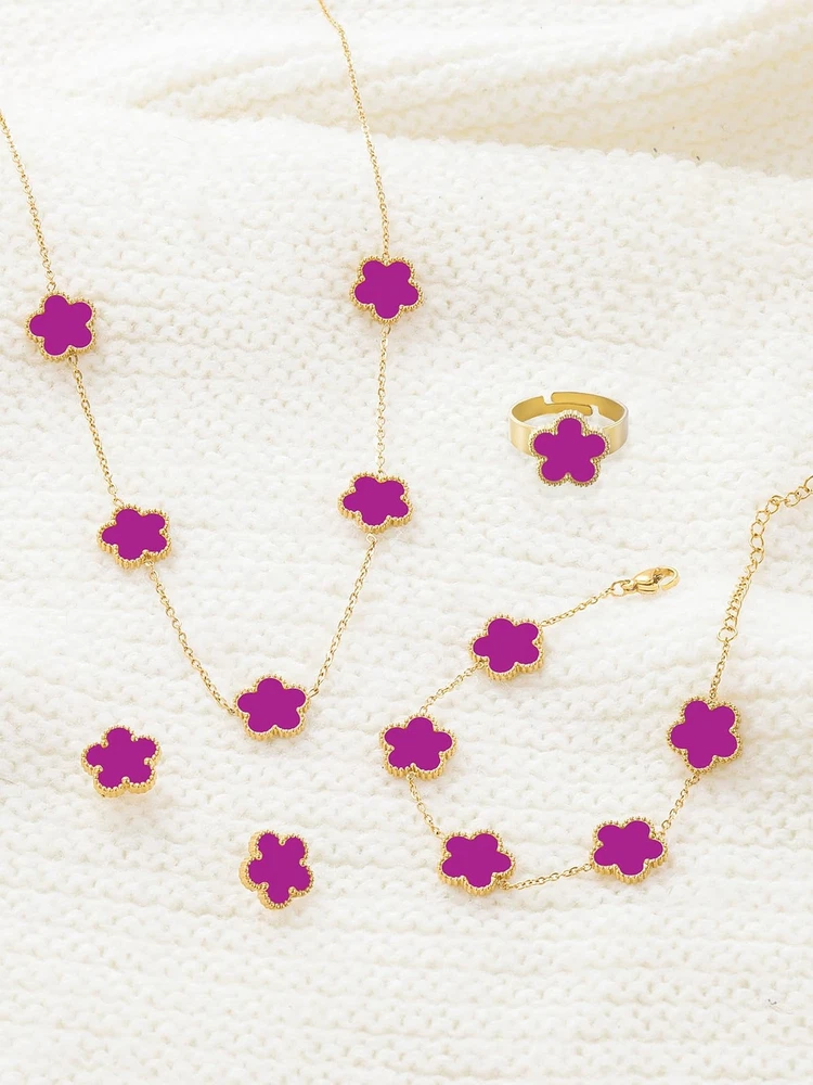 Absolutely love this lucky five-leaf clover set! The gold plating has a beautiful shine and the pieces feel surprisingly high quality. Perfect for everyday wear or gifting - brings a touch of elegance and good fortune to any outfit.