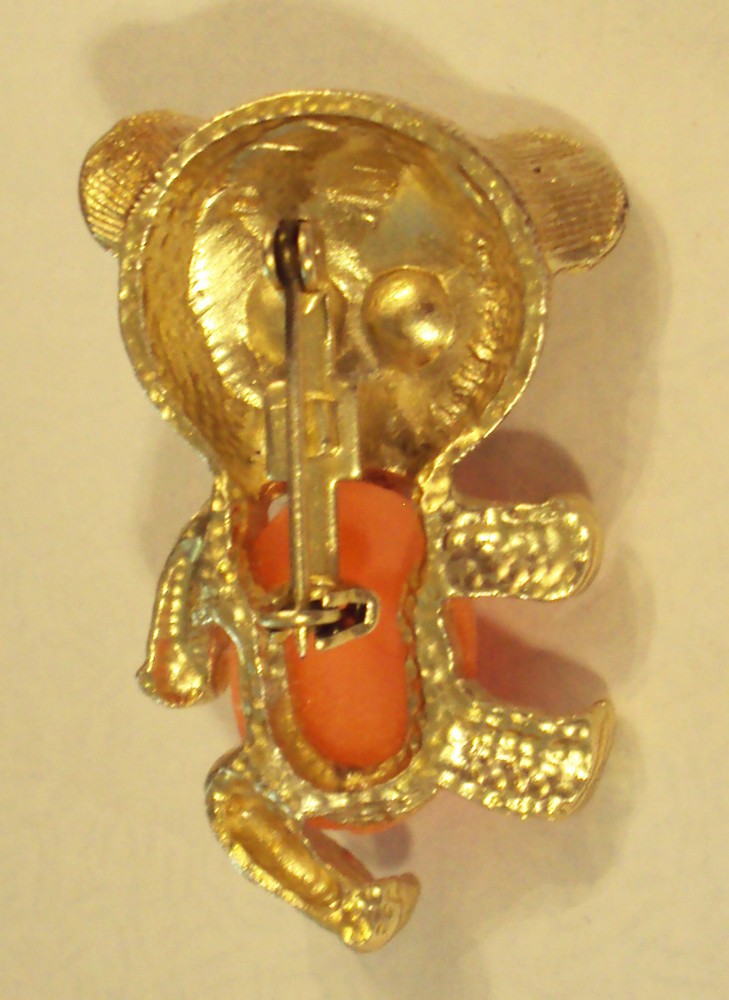 Gold Plated Monkey or Teddy Bear Jelly Belly Pin with Moving Google Eyes VTG