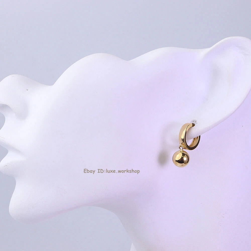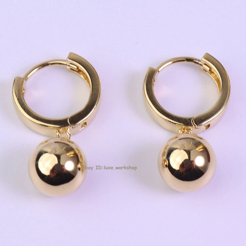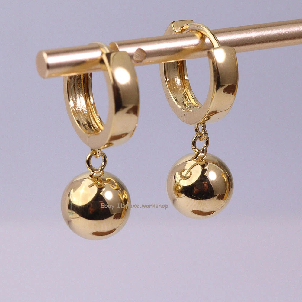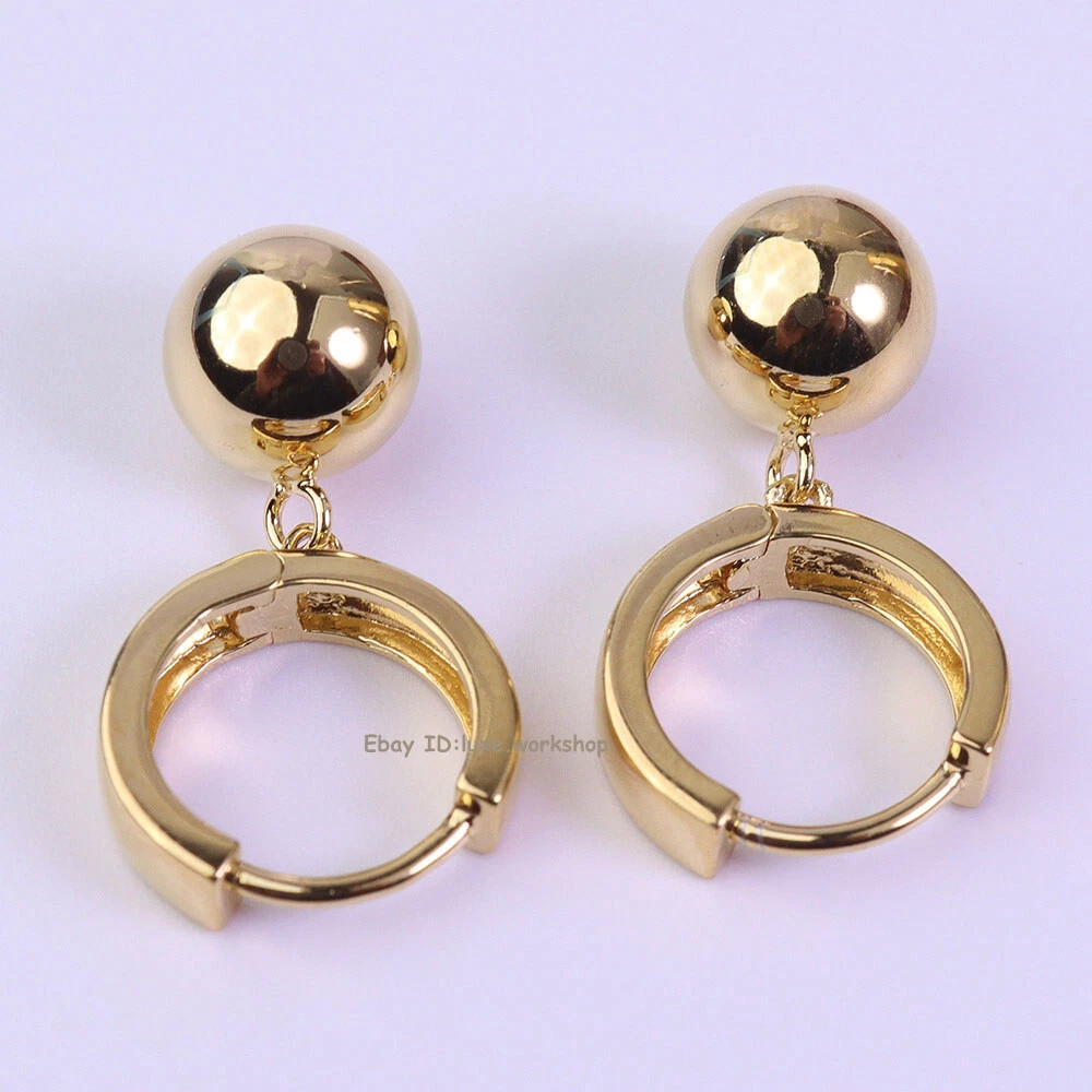Gold Plated Real 925 Sterling Silver Polish Ball Fine Earrings Drop Hoop 0.9inch