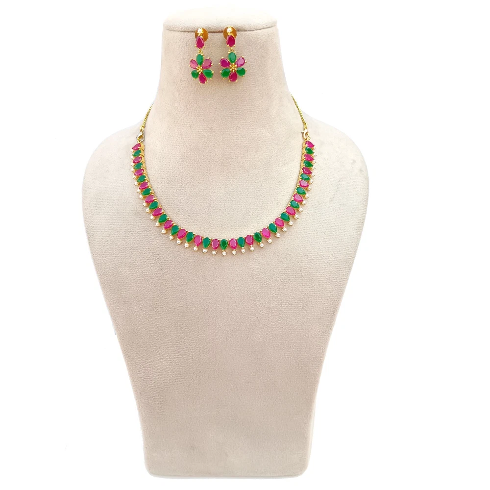 $ 17.75Gold Plated Emerald Green Kundan Polki and Crystals Necklace with Earrings