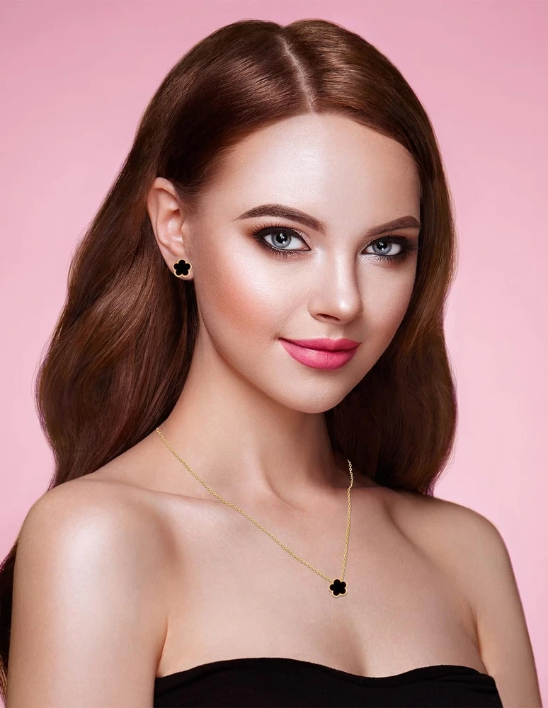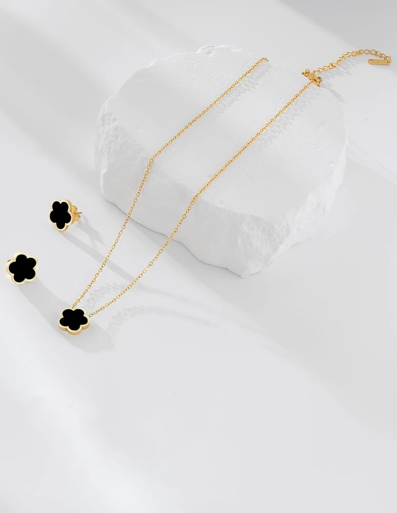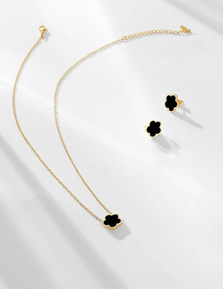 Gold Plated Stainless Steel Flower Necklace and Stud Jewelry Set for Women Product Details Color: Black-Gold Plated Brand: JIEMUCHU MPN: TZ10006 UPC: 784853515170 EAN: 0784853515170 Product Dimensions : 17.72 x 0.51 x 0.08 inches; 0.25 ounces Item model number : TZ10006 Department : womens Date First Available : June 11, 2024 Manufacturer : JIEMUCHU Brand, Seller, or Collection Name: JIEMUCHU Material: Yellow Gold Gem Type: No Gemstone Setting: Prong Setting Item Length: 17.72 inches Diameter: 1.30 centimeters Length: 50.00 centimeters Chain: c_link Clasp: Lobster Clasp Ring size: adjustable Stone Weight: 2.00 carats Model number: TZ10006 Metal: Gold Plated Copper Metal stamp: 14K Gold Plated Metal Weight: 6 g Surface markings and blemishes: Lightly Blemished Stone shape: Irregular Minimum color: Black Minimum clarity: Slightly Included Cut: Fair cut