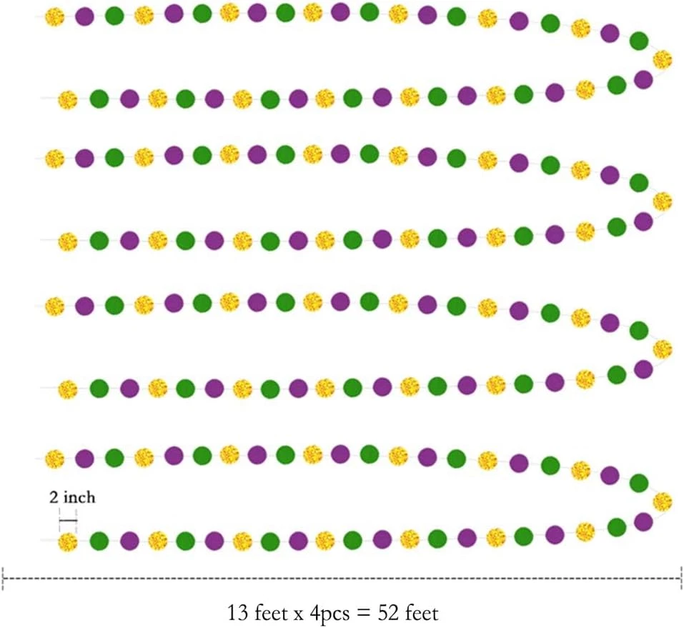 Store New Arrivals Add to Favorite View Feedback Contact Fast deliveries to the customer's home Quality customer service John Make the customers happy! Gold Purple Green Mardi Gras Party Decorations Glitter Dot Garland Circle Streamers Banner Backdrop for Fat Tuesday Carnival Themed Parties Wedding Baby Shower Birthday Decor Description Vibrant Mardi Gras Garland Decorations: Includes 4 strings of 13 feet garlands in gold, purple, and green with 2-inch double-sided reflective glitter circles sewn onto durable silver string. Perfect for Mardi Gras, Fat Tuesday, Carnival, and other festive celebrations. Perfect for Mardi Gras and Themed Parties: Celebrate in style with this Mardi Gras-inspired garland. Ideal for Mardi Gras parties, Carnival events, Fat Tuesday gatherings, New Orleans celebrations, and more. High-Quality and Durable: Made of sturdy, eco-friendly glitter cardstock, these garlands shine with the rich colors of gold, purple, and green. The strong silver threading ensures this garland is durable and reusable for many occasions, including Carnival and Mardi Gras season. Versatile for Any Festive Event: Use these garlands to decorate wedding receptions, birthday parties, baby showers, engagement parties, and other celebrations. Also perfect for graduation parties, anniversary celebrations, and holiday gatherings. Easy to Use and Customize: Lightweight and easy to hang across ceilings, walls, windows, or tables. Adjust the length by cutting to fit your space. Perfect for photo booths, backdrops, and creating memorable party scenes. Product Description Decor365 specializes in design and production of home and party decorations. Visit us often, we are sure that we have something to style up your party. COPYRIGHT All Rights Reserved 版权所有 切勿抄袭 Brighten up your Mardi Gras parties and celebrations with our circle garlands to make a jazzy splash on your upcoming special day. Birthday, Baby Shower, even Wedding, it will be a Fun, groovy, and eye-catching addition. Vibrant Color Mardi Gras Garland: 4 x 13 ft. glitter silver circle garlands . Totally 52 ft., Each circle is approx. 2 inches in diameter. Made with high quality sparkly coated card with Long-lasting color These garlands are special designed with glitter and solid color circle dots, which sewing together by gold thread. Easy to Use and Reuse: No DIY Needed. Just hang or swag them in the doorway,below ceiling, on wall, glass window, furniture, door or as banner at reception or dessert table or as backdrop, background at photo booth. Cut it at any length to make it as confetti, curtain, backdrop..... Please unpack and unravel with care to avoid tangling. Fits Multiple Occasions It’s a must buy and will be perfect decoration to any Mardi Gras theme Party or event.... Mardi Gras Birthday Party Decorations Mardi Gras Baby Shower Party Decoration Mardi Gras wedding party Decoration Club, Home Classrooms and Offices Decoration Item model number 178 Plant or Animal Product Type Circle Color Gold Green Purple Material Metallic and glitter paper card Country of Origin China Item Weight 3.84 ounces Shape Circle Dot Item Length 624 Inches Is Lighted No Package Dimensions 7.44 x 4.76 x 0.71 inches ABOUT US We offer the best prices around on high quality products. Our E-store includes media such as books, movies, music and games while offering electronics, toys, sporting apparel, clothing, tools, general home, garden items and more. SHIPPING We are always working hard to ensure your package arrives as soon as possible. Please understand that some factors like weather, high postal traffic, and the performance of shipping companies are outside of our control. We offer free shipping to the lower 48 states and ship within 2 business days of payment, usually sooner. We do not accept P.O. Boxes. Please provide a physical address. For shipping outside of the continental USA, we only use eBay's Global Shipping Program. The item is shipped to KY and then sent to the rest of the world. International customers are responsible for all duties and taxes. Continue to 'check out' to calculate costs for shipping the item to your country. Messages regarding eBay's Global Shipping Program MUST be directed at eBay EXCLUSIVELY. RETURNS We offer a 30-Day Return Policy on items in which you are not completely satisfied with. You have the option of a full-refund or an exchange of the item. No returns are available on items shipped outside of the USA PAYMENT We accept PayPal. CONTACT US This page content is yet to come Please ad us to your favorite seller and visit again later Thank You CUSTOMER SATISFACTION We try our very best to make sure every customer is completely satisfied. If there's a problem, message us! We're happy to help. WE ACCEPT