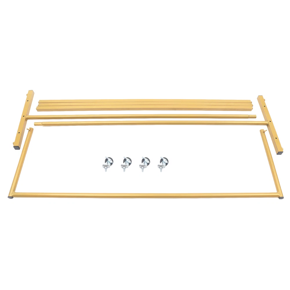 Specification Color: Gold Material: Iron Product Usage: Suitable for Clothes Storage, Clothes Displaying, Home Decoration Style: Industrial Vintage Style Surface Treatment: High-temperature Baking Paint Load-bearing Capacity: Almost 5kg/11.02lbs Package Size: 118*25*6cm/46.46*9.84*2.36in Product Size: 125*35*160cm/49.2*14*63in Product Weight: 4.4kg/9.7lbs Package Included 3*Main Frames 3*Bottom Frames 4*Universal Wheels Gold Rolling Garment Rack Metal Clothing Rack Freestanding Clothes Display Rack Description Are You Still Worried About the Smell and Crease That Appear When the Clothes Are Folded in the Closet for a Long Time? If so, You Might Consider This Clothing Garment Rack. It Is Made of High-quality Iron Pipe. It Is Finished with a Lacquer Process, Making It Resistant to Oxidation and Fading. It Keeps Your Clothes Neat and Tidy Without Ironing Creases. Specification Color: Gold Material: Iron Product Usage: Suitable for Clothes Storage, Clothes Displaying, Home Decoration Style: Industrial Vintage Style Surface Treatment: High-temperature Baking Paint Load-bearing Capacity: Almost 5kg/11.02lbs Package Size: 118*25*6cm/46.46*9.84*2.36in Product Size: 125*35*160cm/49.2*14*63in Product Weight: 4.4kg/9.7lbs Package Included 3*Main Frames 3*Bottom Frames 4*Universal Wheels Key Features High-quality Material: This Clothing Garment Rack Is Made of High-quality Iron Pipe with High-temperature Baking Paint, Which Is a Good Thing for Long Time Usage. Excellent Load-bearing Capacity : the Clothing Garment Rack Is Made of Sturdy Iron Pipe, so It Has an Excellent Weight-bearing Capacity of 11.02lbs . Such Excellent Load-bearing Capacity Allows You to Place Heavy Winter Clothes Without Worry. Unique Appearance: This Clothing Garment Rack Is a Wise Choice for You. the Rack's Bright Gold Color and Smooth Surface Make This Rack a Unique Modern Style. Its Overall Shape Is Modeled on Industrial Piping, Which Is Unique and Beautiful. Hanging Clothes: This Clothing Garment Rack Has a Large Hanging Space with a 49.2inch Hanging Rod. Hanging Clothes on the Rack Will Not Only Make the Clothes less Wrinkled but Also Ensure the Neatness of the Room. This Open Design Is Also Convenient for You to Pick up Clothes. Easy to Move : It Comes with 4 Universal Wheels, Allowing You to Move It Around As You Please. Therefore, You Can Easily Move It from the Bedroom to the Living Room. Easy to Install : It Has a Simple Structure with a Full Range of Accessories, Making It Easy to Install. All You Need to Do Is Simply Assemble It and Stand It up. Detachable Design : the Iron Tube of This Clothing Garment Rack Is Designed to Be Removable, so You Can Disassemble It into Parts That Don't Take up Much Space, Making It More Convenient to Carry and Store. Taking up less Space: It Takes Full Advantage of Vertical Space and Occupies Only 49.2*14in of Floor Space, Making It the Perfect Closet Choice for Small Living Spaces. Easy to Clean : the High-temperature Baking Paint Process Makes Its Surface Very Smooth, so It Is Very Easy to Clean. You Just Need to Wipe It with a Rag to Make It Look New. Details High-temperature Baking Paint : It Is Painted at High Temperatures, Not Only Smooth and Delicate but Also Wear-resistant and Moisture-proof , Further Enhancing the Quality of the Whole Product. Bottom Frames : the Bottom Has a Frame Composed of Three Rods, Which Can Be Used to Place Shoes, Bags, Potted Plants, Etc. to Further Enhance Its Storage Capacity. Application It Is Suitable for a Hallway, Entryway, Bedroom, Laundry Room, Clothing Store, Office, Shop, Balcony, Etc. to Hang Clothes, Towels, Scarves, Etc. and Put Shoes and Other Household Items. Notes Please Allow the Slight Color Difference Caused by the Shooting Light and 1-3cm Error Due to Manual Measurement, and Make Sure You Do Not Mind Before You Place the Order. Payment Delivery details Terms of sales About us Contact us Payment We accept ebay payment 。 Fees such as import duties, taxes are not included in the item price or shipping costs. These charges are the buyer's responsibility. Delivery details Shipping: 2-9 working days to: USA Terms of sales We maintain high standards of excellence and strive for hundred percent customer satisfaction. Feedback is very important to us. We hope that you contact us immediately before you give neutral or negative feedback, so that we can address your concerns. It is impossible to address issues if we do not know about them! About us Your satis faction is our ultimate goal. We work hard to earn your trust and future business. Our certified technicians have tested each item before shipping. The unit comes with 1 year limited warranty on all manufacturing defects. a) If you receive a defective item, you may return it or ask for a discount. Please contact us within 14 days after you receive the package. b) What you returned must be intact and in its original packaging as re? u. Customer is responsible for shipping costs of the returned item. c) We will cover the cost of shipping back t with the shipping rate indicated in the registration page. We will send you a new unit or refund the full payment you paid. Thank you. Contact us Business Hour Business Hour: Monday To Friday: 8:30 AM to 5:00 PM (Beijing China time) Due to time zones, our reply to your questions may not be immediately. But within above working time, we will reply your email within 24 hours. If it's non-workdays, please kindly be patient and wait till Monday. Please contact us with ebay message. Please feel free to contact us if you have any questions. Monday To Friday: 8:30 AM to 5:00 PM (Beijing China time) Due to time zones, our reply to your questions may not be immediately. But within above working time, we will reply your email within 24 hours. If it's non-workdays, please kindly be patient and wait till Monday. Please contact us with ebay message. Please feel free to contact us if you have any questions. PlatformSKU HG-ZJ-4430 Type Clothes Rack Brand Unbrand