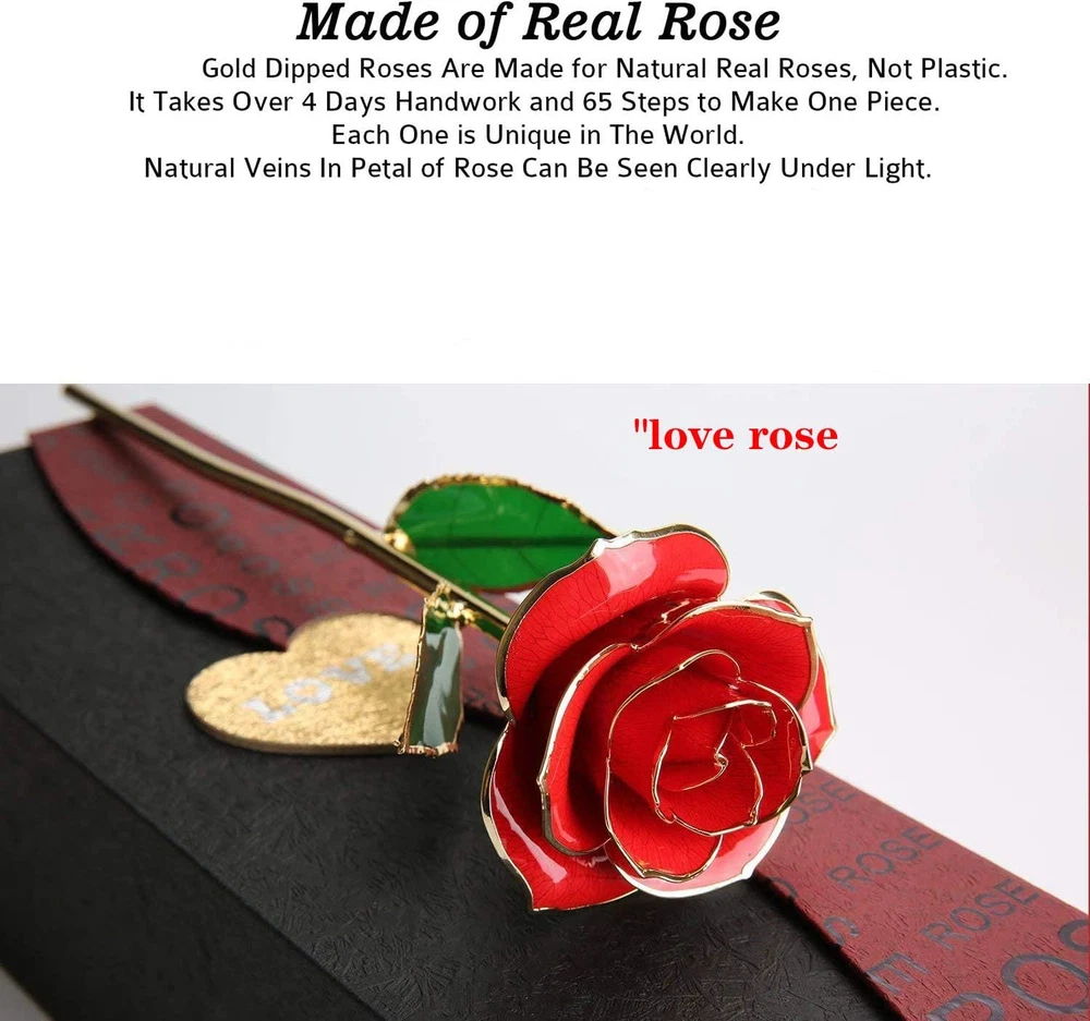 Store New Arrivals Add to Favorite View Feedback Contact Fast deliveries to the customer's home Quality customer service John Make the customers happy! Gold Rose 24K Plated Gold Dipped Rose, Forever Preserved Red Rose Flowers with Stand,Romantic Gift for Valentine'S Day and Anniversary, Best Gifts for Her, Wife,Girlfriend, Mothers Day,Birthday Description 🌹【Perfect protection 】- The stem is completely covered with 24K gold, the petals and leaves are edges with 24K gold, very luxury and bright. Intricate details of the leaves and delicate petals remain visible; The edges and stems are dipped in 24K gold to capture the beauty of both the gold and the real rose. 🌹 【Sweetest Day Gift】-- handcraft allows the dipped roses to never fade or deform, which represents your everlasting love to your significant other! Our eternity rose is original rose gold dipped as a whole and handmade individually– It is a special gift that will Last Forever and symbolizes Eternal Love. 🌹 【15 days of extensive masterpieces 】 Rose- dipped in 24 K gold to preserve the roses for a lifetime. Next, they are dipped and plated in 24K Gold to create a breathtaking masterpiece for your lifetime enjoyment. Creating each rose flower is a time consuming process with over 32 meticulous steps and 15 days of hand work by skilled artisans and technicians. 🌹 【"she" smiles in bloom.】A Real Rose Made Gift For Her, A Loving Message. this makes a unique gift for your significant other on Valentine’s Day, Mothers Day, Thanksgiving Day, Birthday, Christmas, etc... best gift for girlfriend, wife, Valentine's Day, Mother's Day, lover's birthday, Anniversary etc. 🌹【A Romantic and Unique Gift for Her】- 24k gold rose And be with a transparent stand for conveniently placing/display and an exquisite gift box with magnetic closure. There is recessed channels for the rose in the display case interior, each rose is delicately packed in exquisite gift box to.MNIEYU supports "1 year quality policy", 90 days unconditional. Product Description Dipped in 24k Gold& Each rose dipped in 24k gold is naturally different For your wife, girlfriend, mom, great grandma,or female friend, sisters and all your beloved ladies. Rose measures 11.06 -12" approximately. Combined the flower theme and Theme of Love forever. this rose dipped in 24k gold will last and isafitting tribute to your love for each other! forgetabout thesame old red Fresh roses that will only last a few days and buy a luxurious, unique gold rose instead Inaddition to the specific Rose for each anniversary, 24k gold rose can be substituted for most anniversaries if so desired. Gorgeous and unique they are ideal for almost any special occasion. abrilliant appearance that can never corrode, but will retain its stunning elegance for literally thousands of years.Each piece is a unique work of art that is a stunning symbol of long-lasting friendship, beauty and love.The gilded rose can be used as a gifts for Mother's Day, Birthday, Christmas. Great gift for lovers anniversary, wedding engagement, valentines day etc. Item Name: 24k gold rose Color: Red Length:10.06-12 in Ackage Size: 12.5*4.1*3.6 inches Package Weight: 410g Product size (L x W x H): 11.02 x 2.75 x 2.75 In Package size (L x W x H): 12.4 x 4.1 x 3.4 In 24K Gold Rose Artificial Flowers, Love Forever Long Stem Gold Foil Trim Red Rose Flower. Every rose is all handmade by skillful craftsman.Through an extensive process of over 32 steps ensure the delicate details of the petals and leaves remain visible. Faith in Love - The roses stand for the loyalty of love and the gold represents the nobility of love, the combination of the two means the eternity and sturdiness of love. Great gift for lovers anniversary, wedding engagement, valentines day etc.Her gesture, motion, and her smiles,Her wit, her voice people heart beguiles,She likes "it". the best gift things come when you least expect them to. /24k gold rose Display case interior has recessed channels for the rose, Rich packaging, you can show your loved one how much you care by presenting her with this gorgeous and thoughtful token of appreciation. Love, so soft and warm beside , It would have to be to She/ Gold Plating Rose. Best Gifts for Her Gold-plated rose color: red/blue/pink The moral of the red rose is: "I love you". The moral of the Pink rose is:The sincere love. The moral of the blue rose is:You are my one and only. Your Lover / Wife / Girlfriend / Mother Why are you choosing our MNIEYU gilded rose? MNIEYU Rose-beautiful golden appearance and (heart-shaped) packaging. Golden appearance will not corrode and can protect the rose for a long time. Romantic long stemmed rose flower, as the main part of love, also represents eternal love. Girlfriend's Gift √ Birthday √ Christmas Gift √ Mom's Gift √ Wife's Gift √ Sweetest Day Gift √ Wedding √ Wedding anniversary √ Each rose A brilliant appearance that can never corrode . Fresh roses always withered soon.Gold Rose has now artistically combined these enduring symbols into a prestigious gift that lasts an eternity. Representing your unique love! Production process: Artificial pruning+Handmade dipped gold +Handmade Gold plating Package includes: 1x 24k gold rose 1x User's Manual 1x Transparent Stand 1x Gift box Item Package Quantity 1 Plant or Animal Product Type roses Unit Count 1 Count Color Red(with Stand) Product Dimensions 3.14"D x 3.14"W x 11.02"H Material 24K Gold Plated Item Weight 15.4 ounces Indoor/Outdoor Usage Outdoor, Indoor Recommended Uses For Product Gifting, Home Decor Package Information Box Seasons All Scent NO Specific Uses For Product Anniversary,Valentine's Day,Mother's Day,wife,girlfriend Occasion Anniversary,Valentine's Day,Mother's Day,wife,girlfriend Number of Items 1 ABOUT US We offer the best prices around on high quality products. Our E-store includes media such as books, movies, music and games while offering electronics, toys, sporting apparel, clothing, too