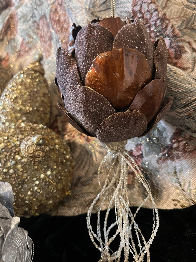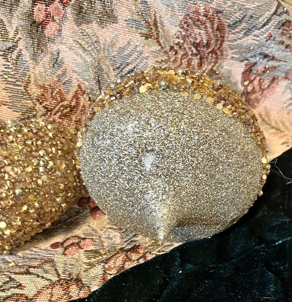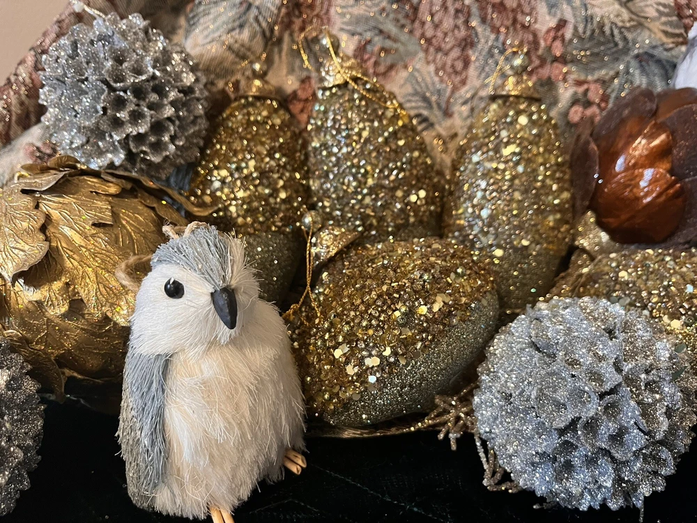 These are beautiful! Woodland themed forest cabin, rustic charm. Had for many years stored however they have not been used. They all sparkle other than the two cute little shabby birds. Many shapes including Acorn, tapered, the gold and silver large ones are maple leaves. All are non shatter. Gold Silver mixed with the brown golden acorn shaped also. Please see the photos. All are in very good condition. There are two that I looked over that has a pinch of glitter however a touch up would do just fine. Probably from being together moved in A box. These are M-L ornaments. The tree skirt is not included for display only. Any questions please ask. There are 13 all together. Boughten at high end store. Happy Holidays! Feel free to make offer if interested.