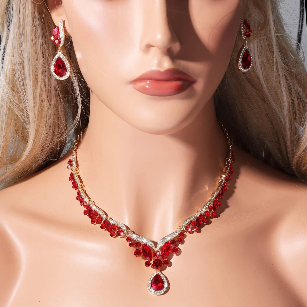 Gold Silver Red Emerald Pink Black Blue Necklace Earrings Jewelry Gifts Set for Bride Mom Wife Grandmother Women on Wedding Birthday Party, Crystal Diamond Jewelry Set Gift Product Details Color: Red Brand: uqvn MPN: Does not apply UPC: Does not apply EAN: Does not apply Package Dimensions : 5.91 x 5.91 x 0.98 inches; 5.76 ounces Department : womens Date First Available : December 23, 2022 Brand, Seller, or Collection Name: uqvn Metal: alloy Material: Zinc Gem Type: Rhinestone Clasp: Lobster Clasp Number of stones: 50