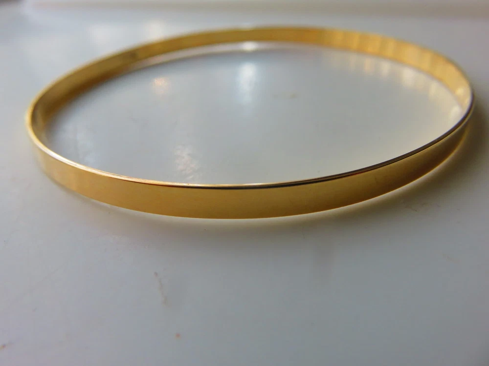 Band Width: 4mm Weight: 6.1 grams Internal Diameter: 65mm British Hallmarked by Sheffield Assay Office For a statement looking bangle