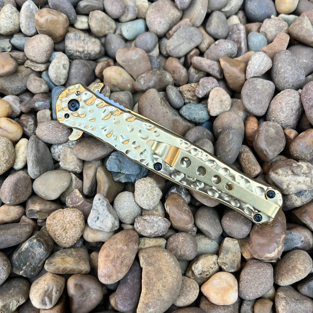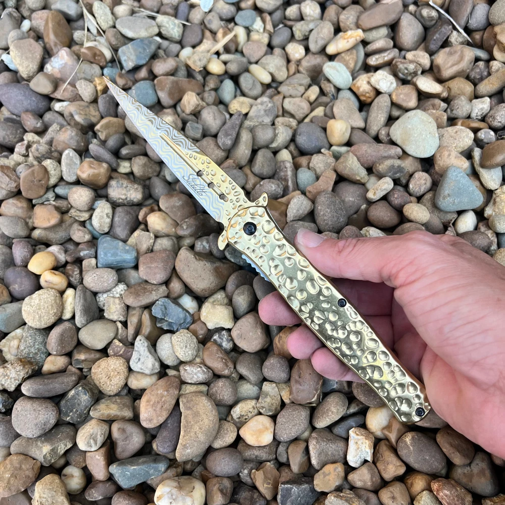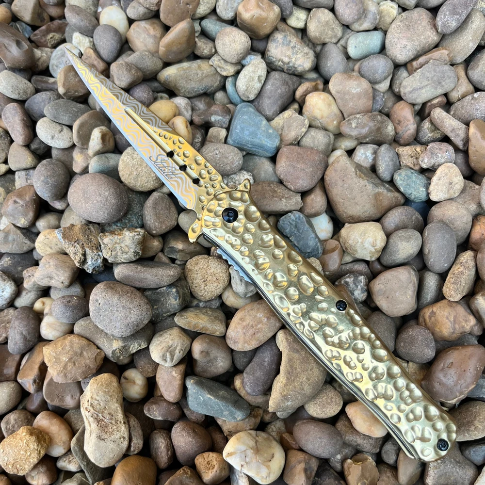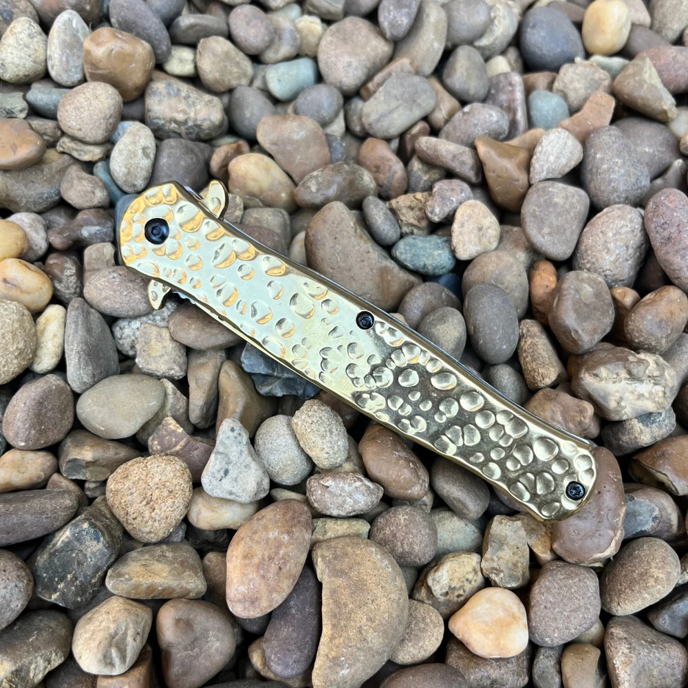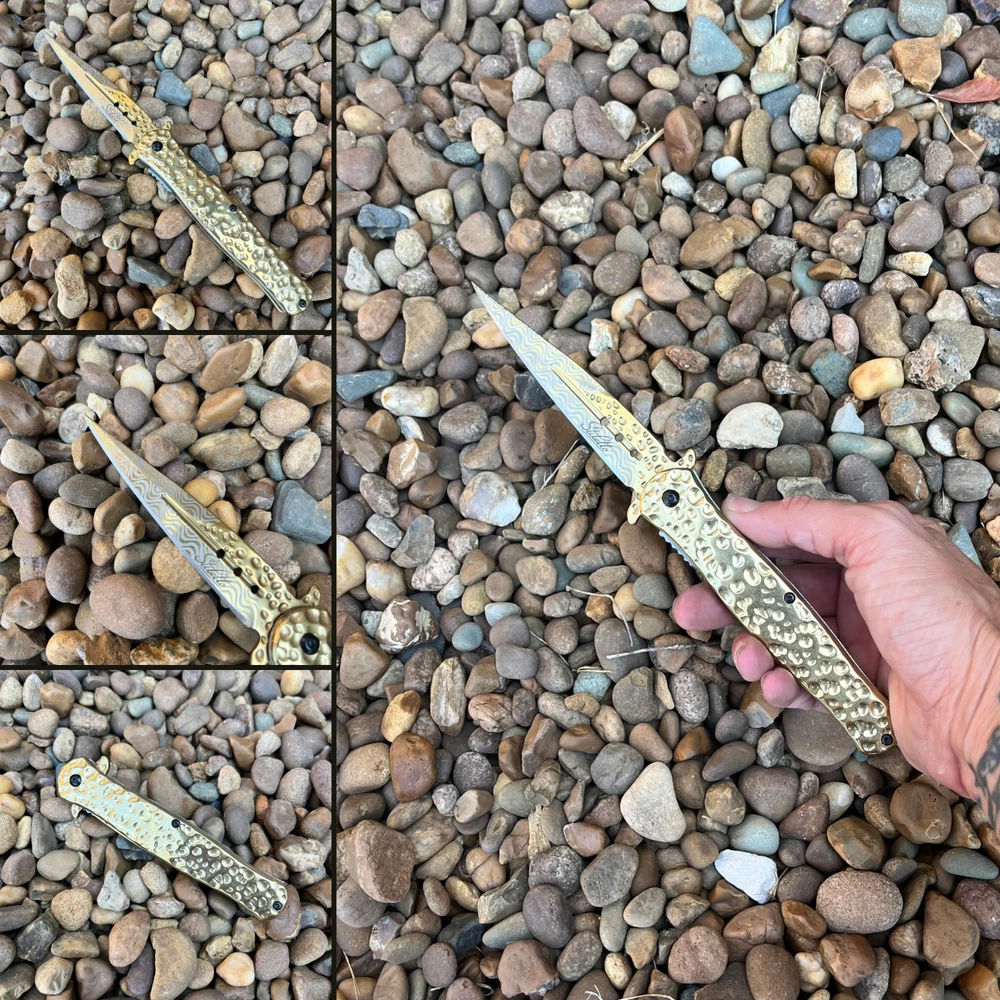 Unleash the Power of Italian-Inspired Elegance Introducing our premium 8.5" stiletto knife, a masterpiece crafted with precision and style. The striking hammered gold finish adds a touch of luxury and sophistication, while the lightning-fast assisted opening mechanism ensures you're always ready for action. Key Features: 8.5" Overall Length: Commanding presence and impressive size. 4" Stainless Steel Blade: Durable and razor-sharp cutting edge. Hammered Gold Finish: Luxurious and eye-catching design. Spring Assisted Opening: Quick and effortless deployment. Black Handle: Stylish and ergonomic for a comfortable grip. Perfect for: Outdoor enthusiasts Knife collectors Everyday carry (EDC) Tactical purposes Elevate Your Knife Collection Experience the perfect blend of form and function with this exceptional stiletto knife. Order yours today and discover the power and style of Italian craftsmanship. We strive for positive Feedback on all transactions. Your satisfaction is very important to us, if you experience a problem of any kind with your purchase please contact us first before leaving any feedback or opening any claims, any issues will be resolved more efficiently if you contact us first and deal directly with us. We do stand behind our products and will do anything in our power to make sure that you feel satisfied with your purchase. If you are not happy with your purchase, quality, DOA items. PLEASE email us , We would be more than happy to replace the item. Thank you for the cooperation.