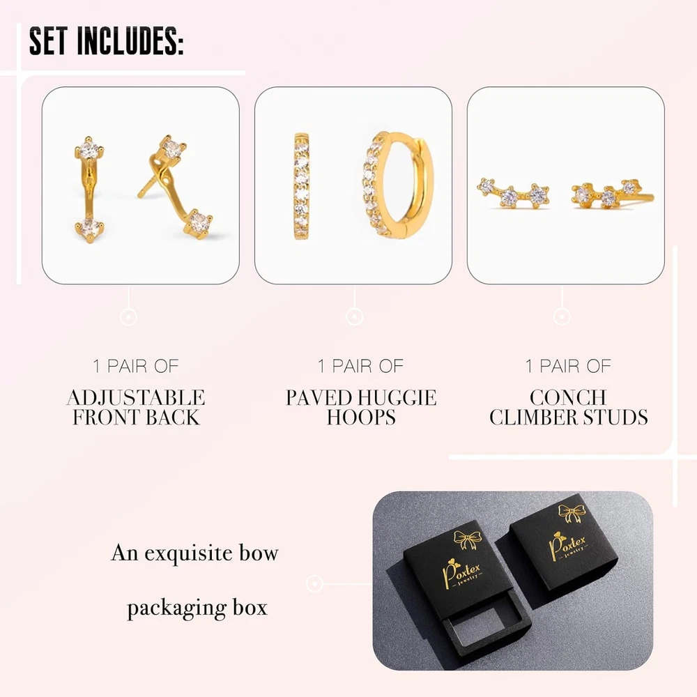 Store New Arrivals Add to Favorite View Feedback Contact Fast deliveries to the customer's home Quality customer service John Make the customers happy! Gold Stud Earrings Set for Women, 3 Pairs Huggie Hoop Jacket Studs Earring Stack for Multiple Piercing, Hypoallergenic 925 Sterling Silver Post Dainty Birthstone Trendy Valentine Jewelry Gifts Description Product Description The video showcases the product in use. The video guides you through product setup. The video compares multiple products. The video shows the product being unpacked. The video showcases the product in use. The video guides you through product setup. The video compares multiple products. The video shows the product being unpacked. Birthstone Earring Set Birthday Gifts for Her Each month is represented by a stunning gemstone, allowing for a personal and meaningful touch. Unique&Dainty Black Earrings 3 Pairs Classical Black Earrings Set Three CZ earrings perfect for completing any look with effortless elegance. Whether it's the classic Small Huggie Hoop, the intricate Ear Jacket, or the delicate Ear Climber, each piece adds a touch of sparkle, making you shine on every occasion! The video showcases the product in use. The video guides you through product setup. The video compares multiple products. The video shows the product being unpacked. Shiny Stud Earrings Set! Not Easy Tarnish Our gold earrings set are made of brass with high quality 925 sterling silver posts, hypoallergenic which is the best choice for sensitive ears. The video showcases the product in use. The video guides you through product setup. The video compares multiple products. The video shows the product being unpacked. April White Diamond Earrings Set February Purple Amethyst Earrings Set March Blue Aquamarine Earrings Set January Red Garnet Earrings Set May Green Emerald Earrings Set June Purple Alexandrite Earrings Set April Silver Diamond Earrings Set Black Earring Set September Blue Sapphire Earrings Set October Pink Tourmaline Earrings Set November Yellow Citrine- Earrings Set December Blue Topaz Earrings Set Gem Type Cubic Zirconia Color 04White Diamond-Apr.(gold) Material Yellow Gold Setting Post Item Length 0.2 inches Department womens Team Name Gold Back finding Push Back Package Dimensions 2.6 x 2.6 x 0.68 inches ABOUT US We offer the best prices around on high quality products. Our E-store includes media such as books, movies, music and games while offering electronics, toys, sporting apparel, clothing, tools, general home, garden items and more. SHIPPING We are always working hard to ensure your package arrives as soon as possible. Please understand that some factors like weather, high postal traffic, and the performance of shipping companies are outside of our control. We offer free shipping to the lower 48 states and ship within 2 business days of payment, usually sooner. We do not accept P.O. Boxes. Please provide a physical address. For shipping outside of the continental USA, we only use eBay's Global Shipping Program. The item is shipped to KY and then sent to the rest of the world. International customers are responsible for all duties and taxes. Continue to 'check out' to calculate costs for shipping the item to your country. Messages regarding eBay's Global Shipping Program MUST be directed at eBay EXCLUSIVELY. RETURNS We offer a 30-Day Return Policy on items in which you are not completely satisfied with. You have the option of a full-refund or an exchange of the item. No returns are available on items shipped outside of the USA PAYMENT We accept PayPal. CONTACT US This page content is yet to come Please ad us to your favorite seller and visit again later Thank You CUSTOMER SATISFACTION We try our very best to make sure every customer is completely satisfied. If there's a problem, message us! We're happy to help. WE ACCEPT